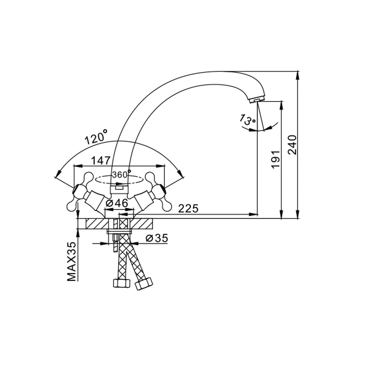 Высота смесителя, мм