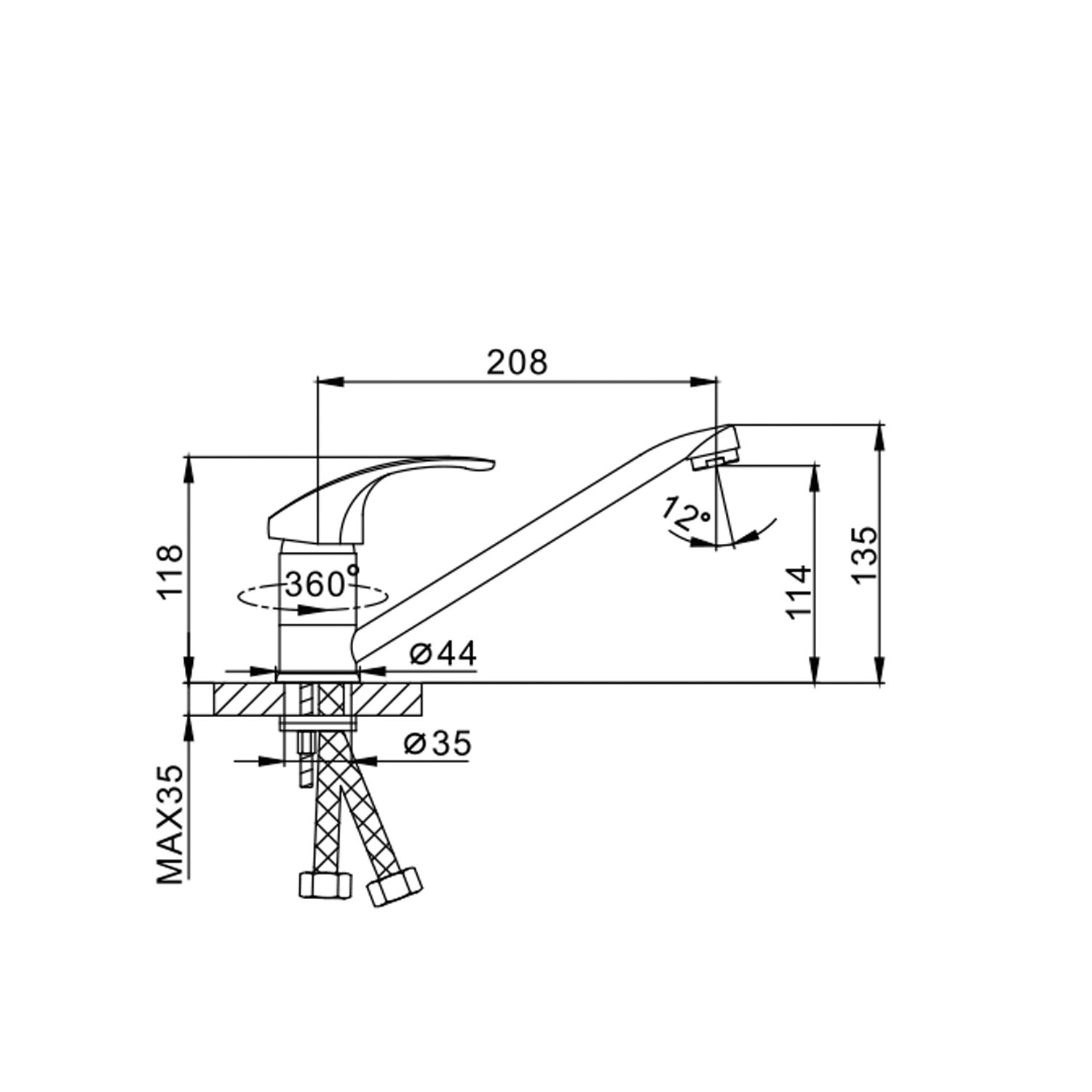 Высота смесителя, мм