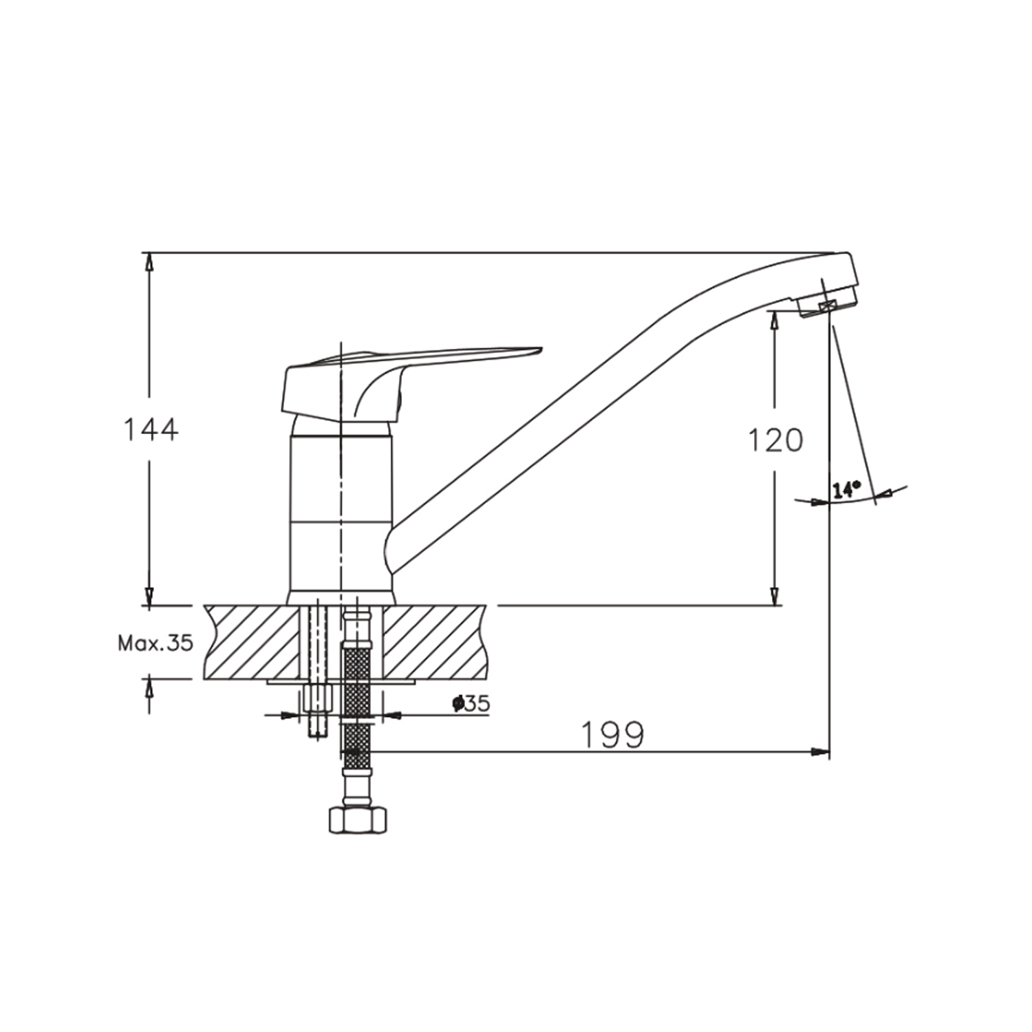 Смеситель для кухни 35к HB4837 HAIBA с/отв п/шпильку^