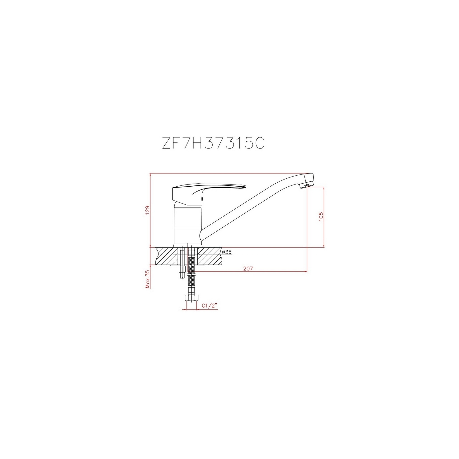 Присоединительный размер подводки для воды, дюйм