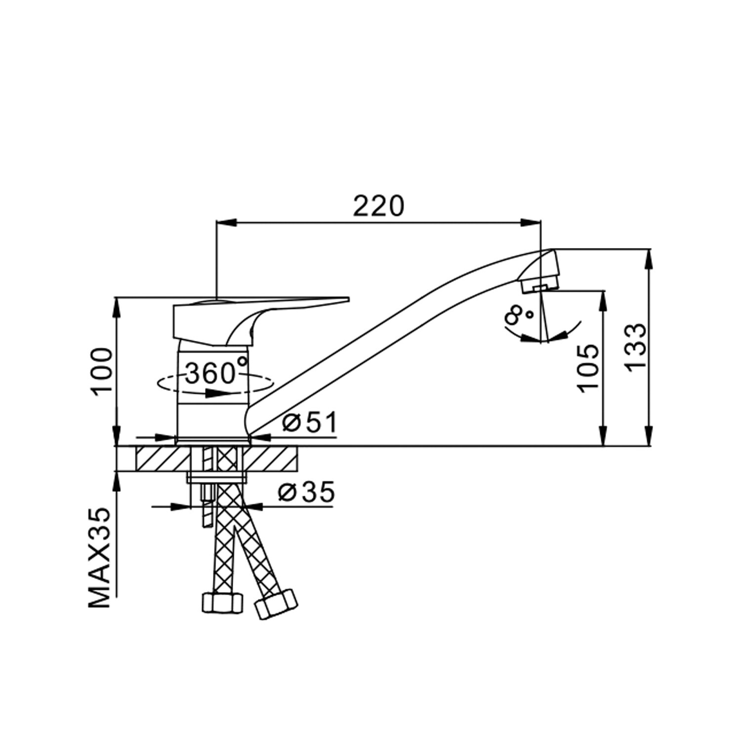 Смеситель для кухни 40к F4204 FRAP (плоский пов.излив, п/шпильку, хром, латунь)