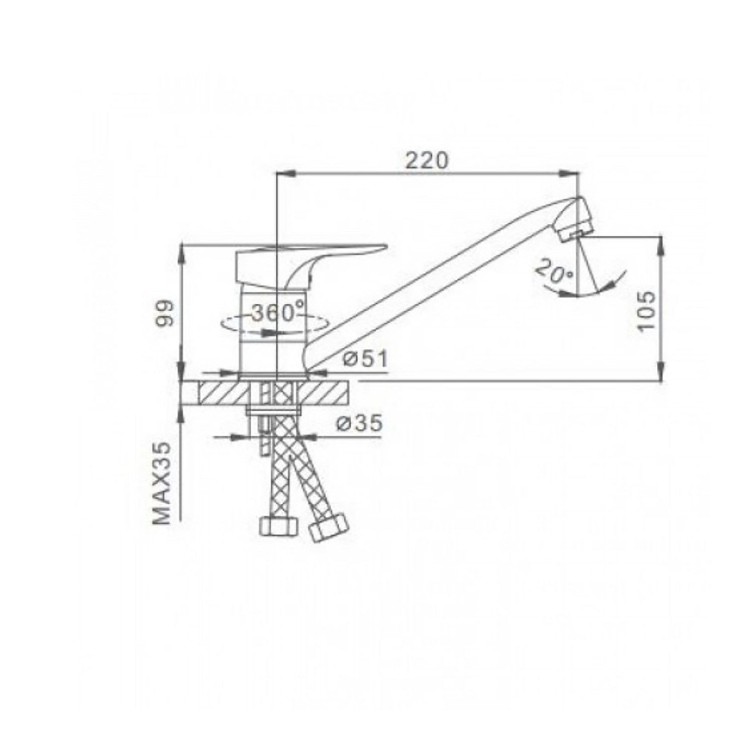 Смеситель для кухни 40к F4228-В FRAP (плоск.длин.пов. излив, п/шпильку, хром, силумин)