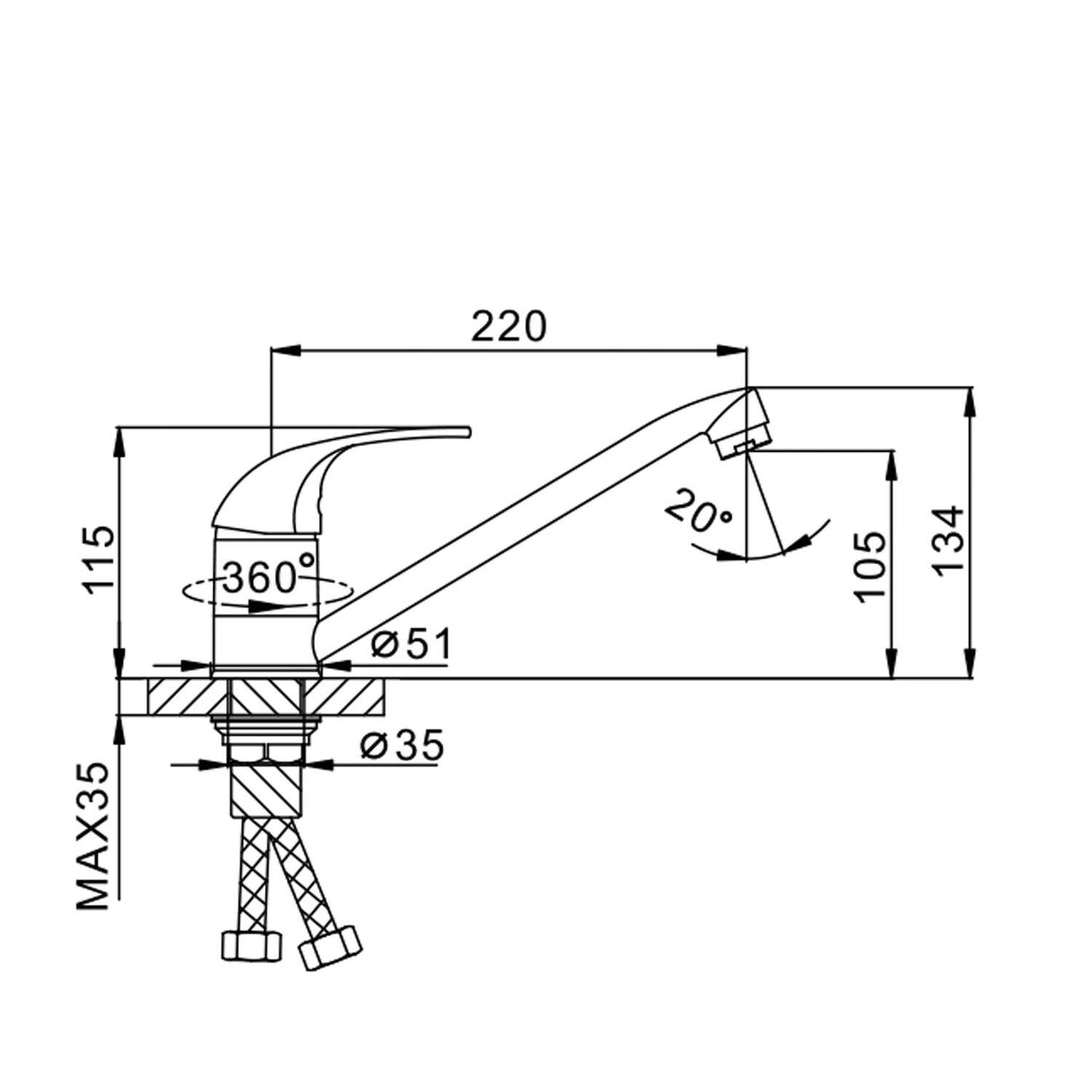 Высота смесителя, мм