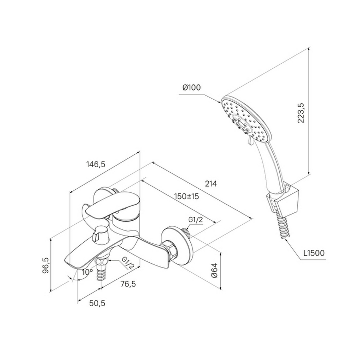 Душевая лейка и шланг в комплекте