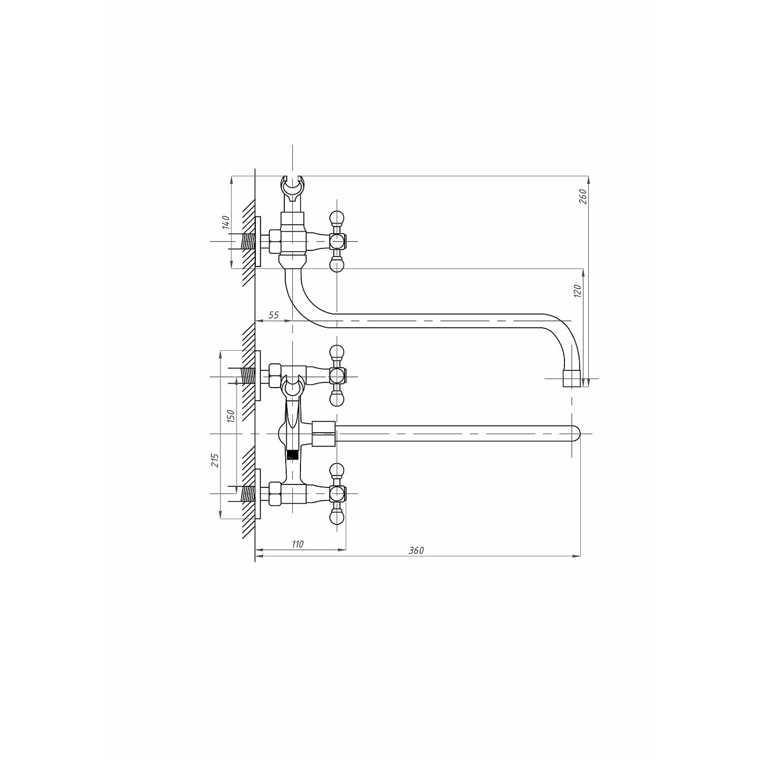 Смеситель для ванны и раковины 1/2 кер ПРОФСАН ПСМ-158-К89 "СТАНДАРТ А" эксцентрики"РУС", КРЕСТ ХРОМ