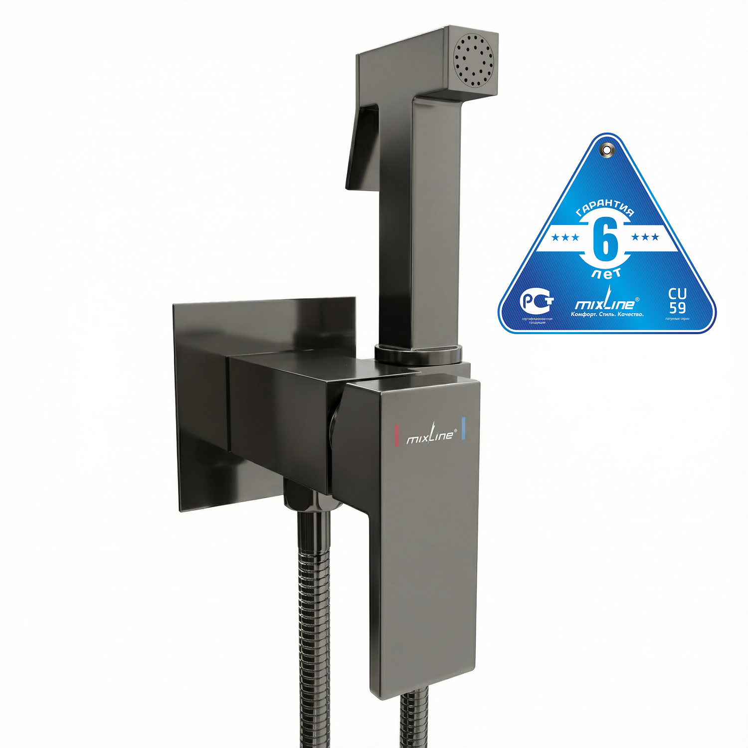 Смеситель с гигиенической лейкой 25k MIXLINE ML31-082GR "Ray" встраиваемый ГРАФИТ