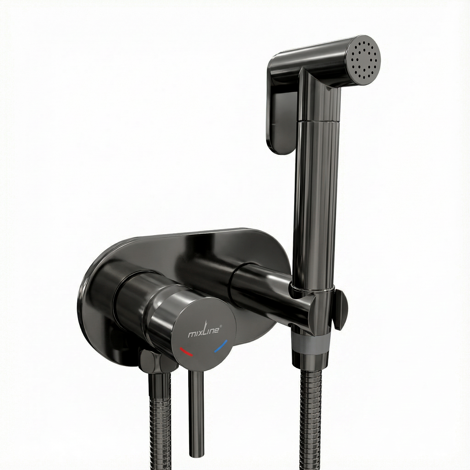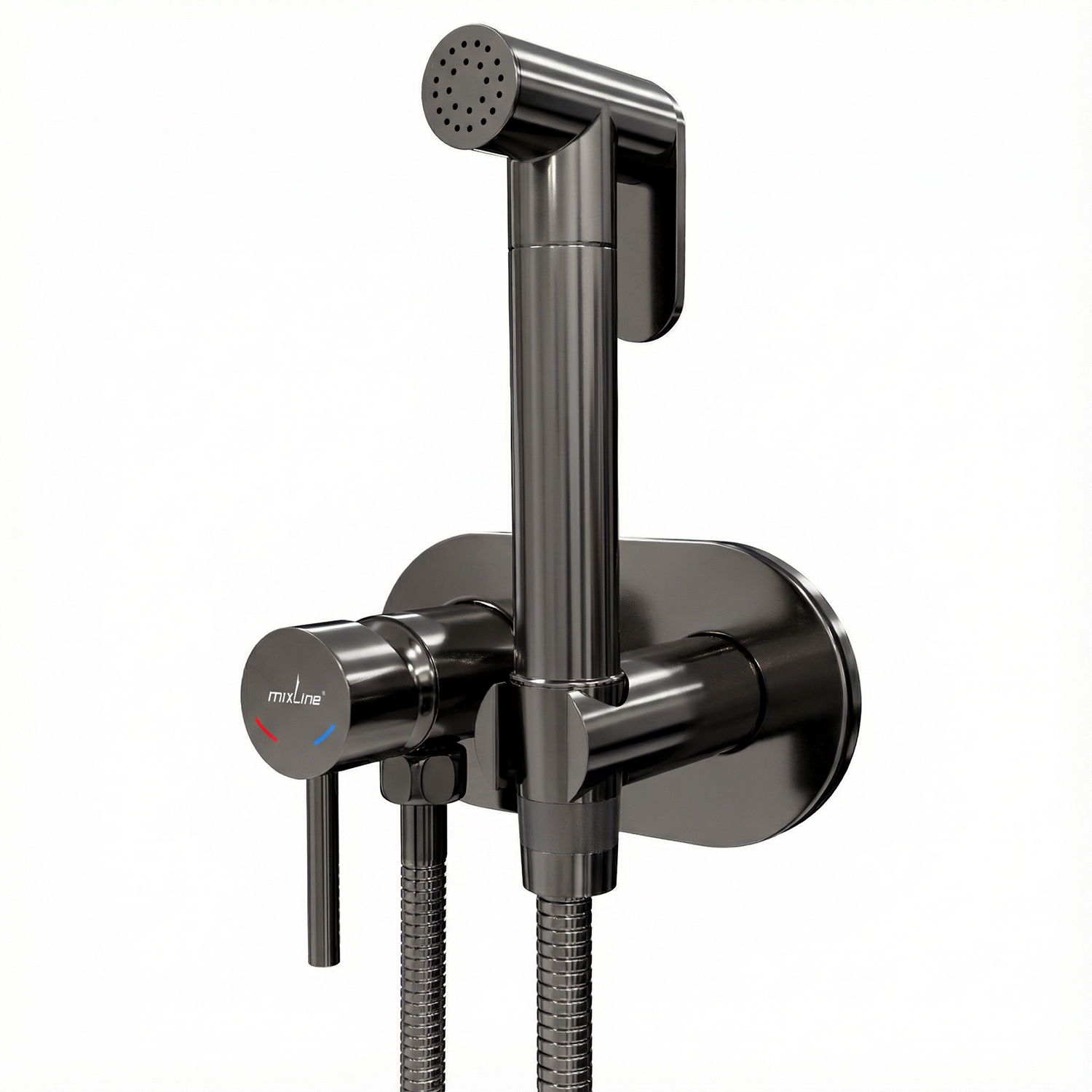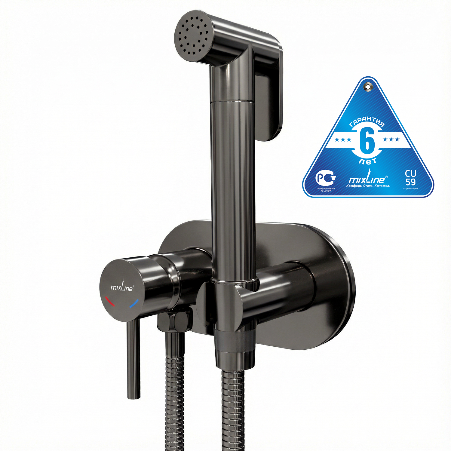 Смеситель с гигиенической лейкой 25k MIXLINE ML31-085GR "Ray" встраиваемый ГРАФИТ