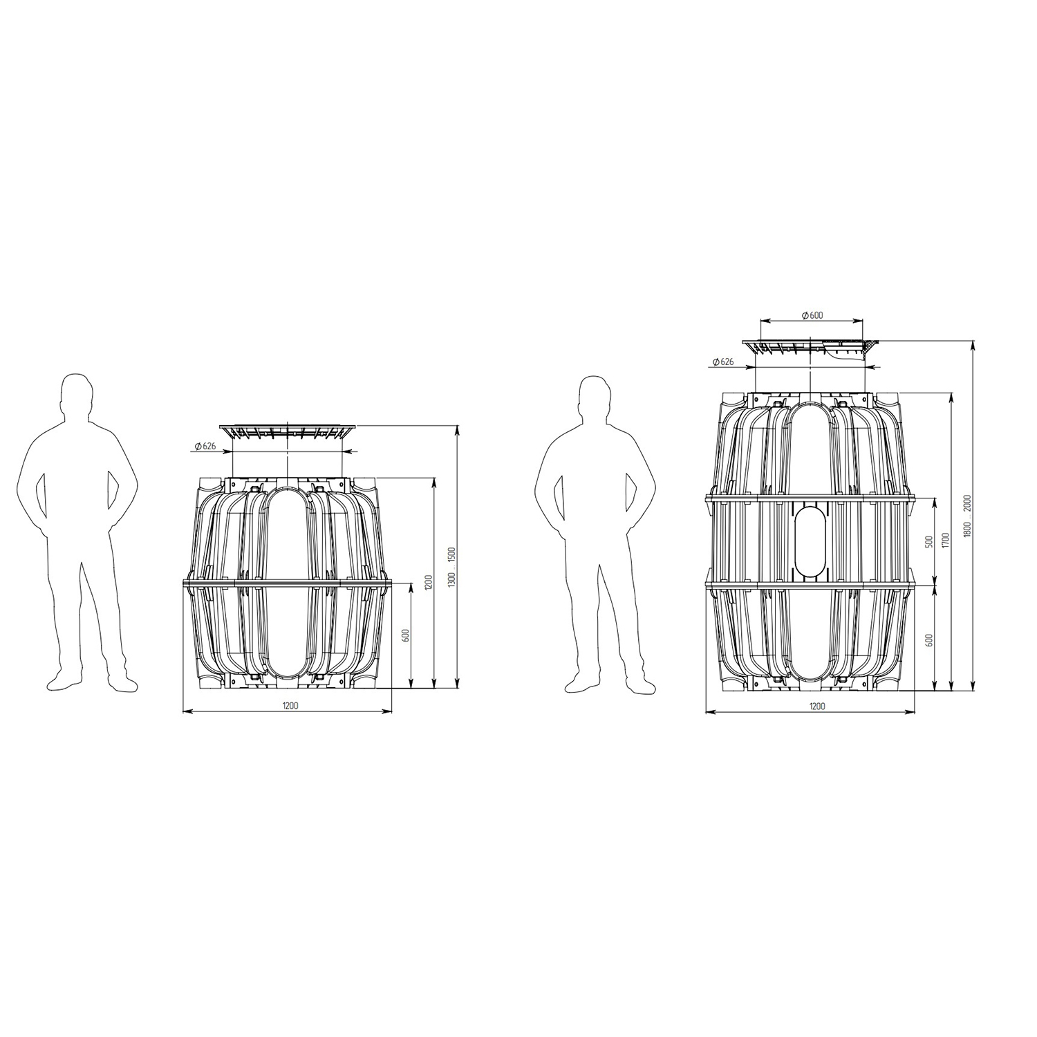 Средняя секция для полимерного универсального колодца поставляется в комплекте с уплотнительным кольцом и служит для наращивания высоты колодца до 0,5 м и объем до 0,5 куб. метра.Колодец без дополнительных секций имеет высоту 1300-1500мм. Объем 1м3.Колодец с дополнительной секций имеет высоту 1800-2000мм. Объем 1,5м3.Колодец с двумя дополнительными секциями имеет высоту 2300-2500мм. Объем 2м3.