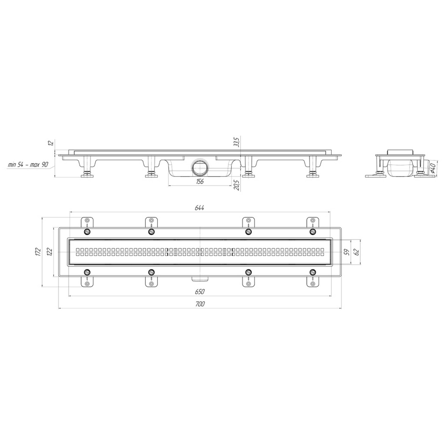 Линейный трап для душа с сухим затвором TLQ1265G – классическое техническое решение для отвода воды из ванной комнаты.Имеет вытянутую прямоугольную форму, его также называют дренажным каналом или душевым лотком. Сверху конструкция трапа закрывается декоративной решеткой из нержавеющей стали.Трап с сухим затвором - идеальное решение при нерегулярном водоотведении и использовании теплого пола.Трап устанавливается в пол, общую высоту монтажа можно регулировать от 66 до 102 мм.Трап изготовлен из прочного АБС-пластика, устойчивого к высоким температурам, ударным нагрузкам и воздействию влаги. Отличается надежностью конструкции и продолжительным сроком эксплуатации. Устанавливается по краям или в углах душевой комнаты и фиксируется с помощью крепежных элементов.Слив горизонтальный, диаметр выпуска 40 мм. Пропускная способность — 45 л/мин.Сверху трап закрывает прямоугольная гладкая глянцевая решетка (нержавеющая сталь), которая задерживает мусор, препятствуя забиванию слива, а также выполняет декоративную функцию.На решетку можно становиться, принимая душ: изделие выдерживает нагрузку до 300 кг.Комплектация: трап пластмассовый линейный в комплекте с решеткой 1 комплект; комплект саморезов с дюбелями DIN 7981; лента гидроизоляционная 2 штуки; паспорт с инструкцией по монтажу; короб для транспортировки 1 штука.