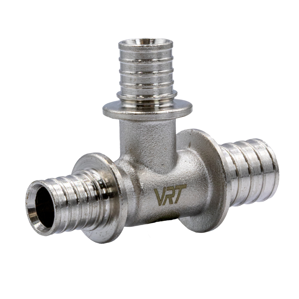 Аксиальные фитинги VRT предназначены для надежного соединения полимерных труб РЕ-Х и PE-RT, используемых в системах водяного отопления (включая системы поверхностного отопления и снеготаяния), а также для технологических трубопроводов, транспортирующих жидкости, не агрессивные к материалам труб и фитингов. Герметичность соединения обеспечивается за счет прижатия стенки трубы к штуцеру фитинга с помощью надвижной гильзы.