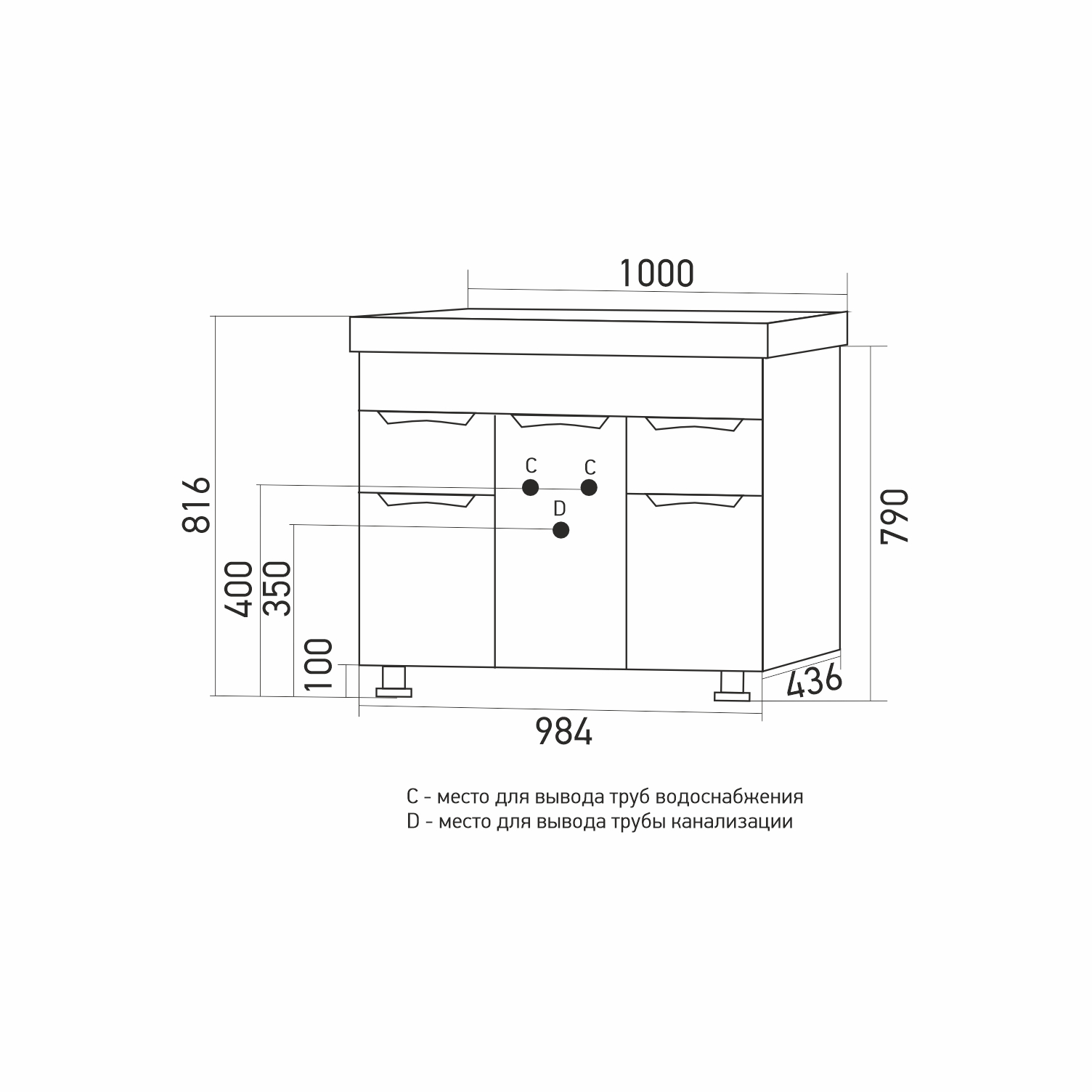 Высота тумбы с раковиной +- 2 мм