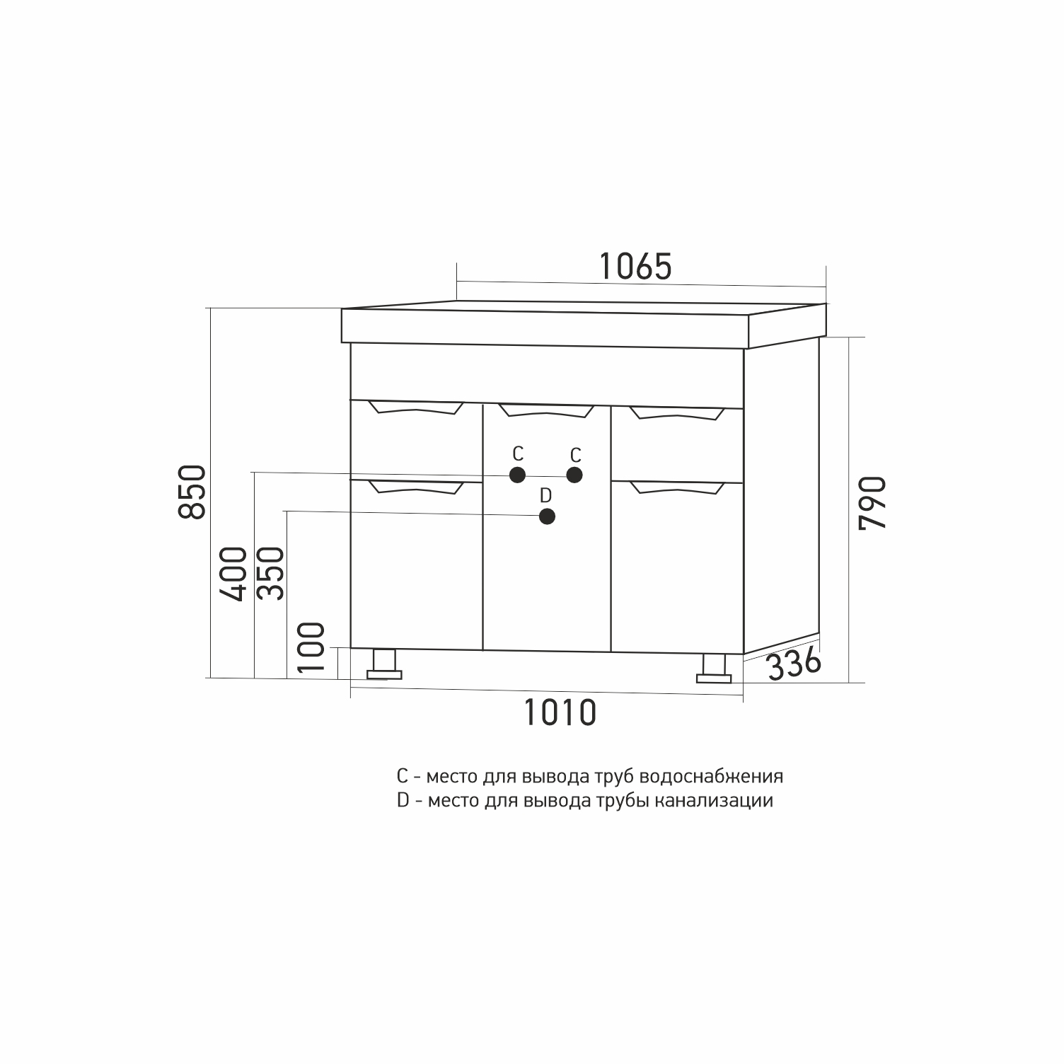 Высота тумбы с раковиной +- 2 мм