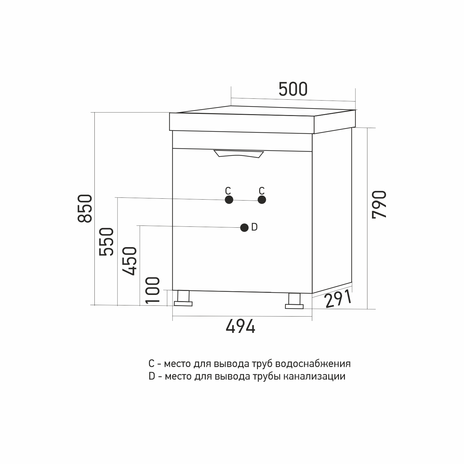 Высота тумбы с раковиной +- 2 мм