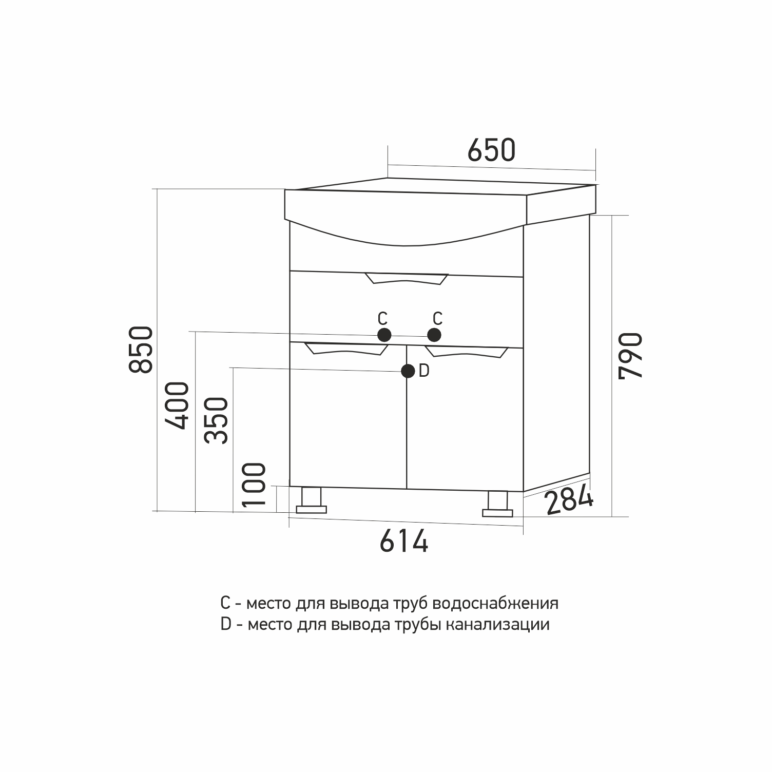 Высота тумбы с раковиной +- 2 мм