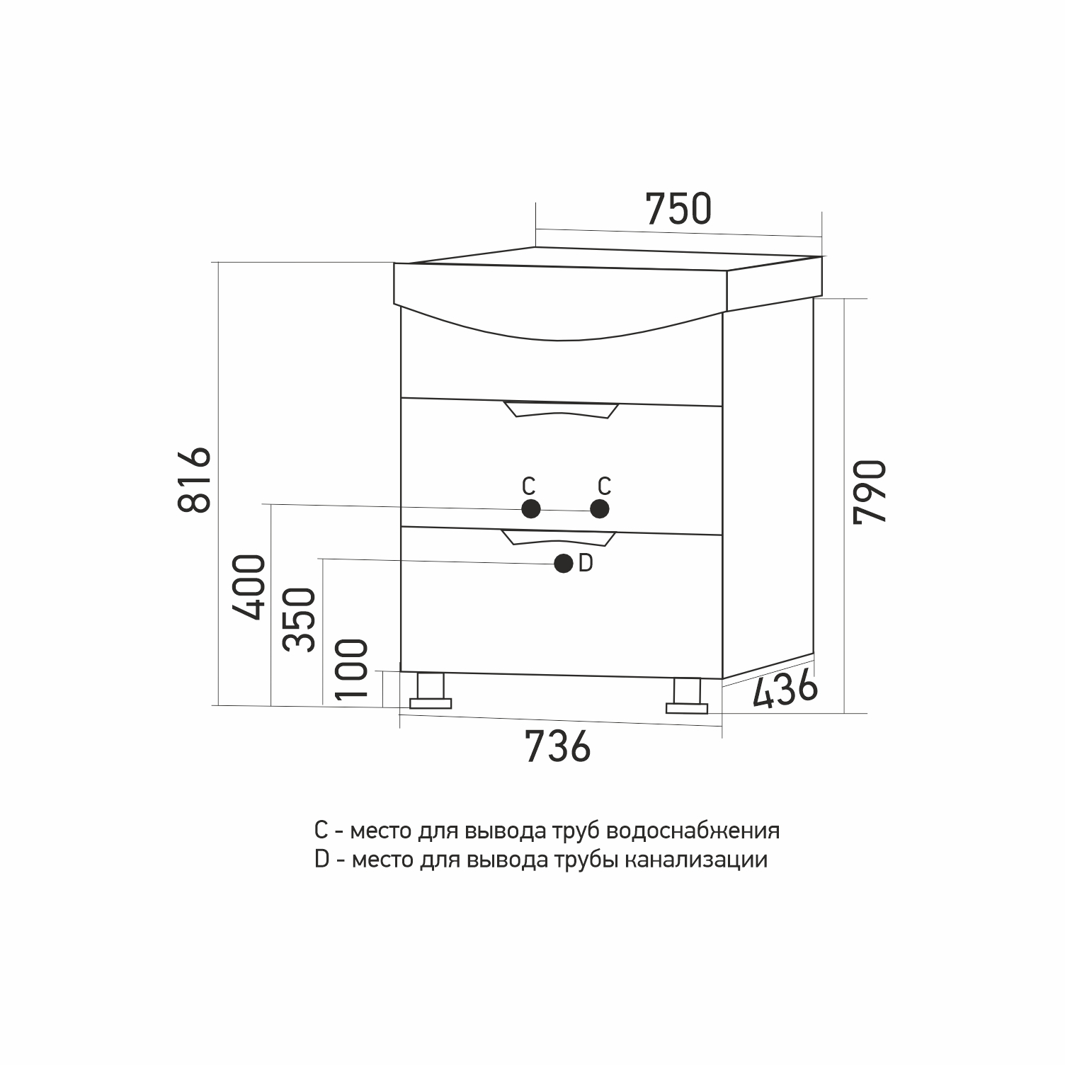 Высота тумбы с раковиной +- 2 мм