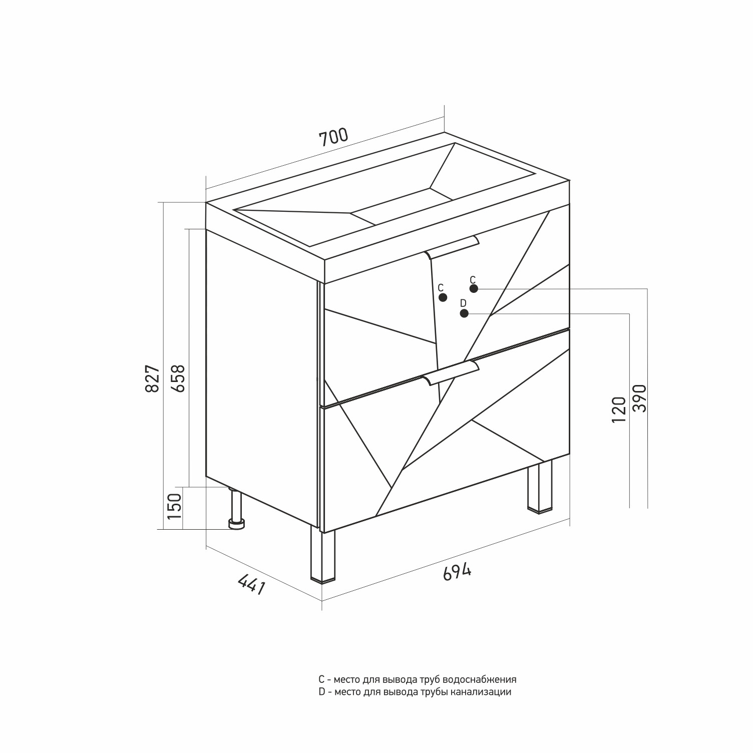 Высота тумбы с раковиной +- 2 мм