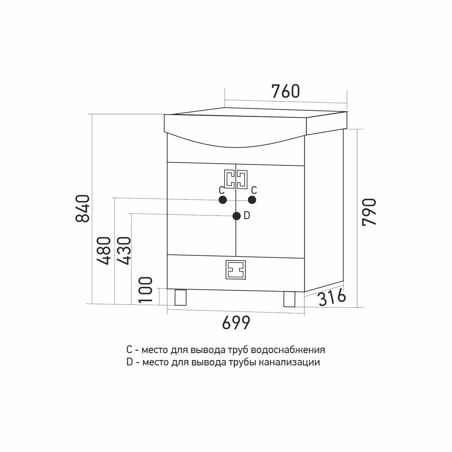 Коллекция КВАДРО создана специально для любителей классического дизайна. Правильные геометрические формы тумбы и шкафчика зрительно вытянут пространство ванной комнаты, а оригинальная современная фурнитура на мебели освежит весь интерьер помещения. Покрытие фасада пленкой ПВХ делает мебель практичной, более устойчивой к механическим повреждениям и неприхотливой в уборке.