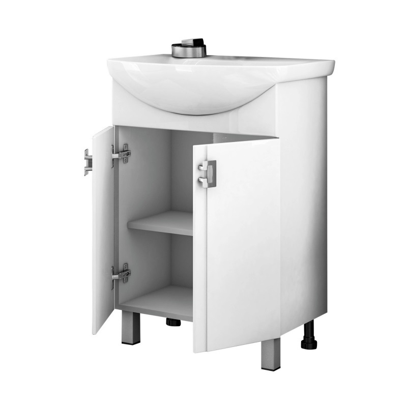 Коллекция КВАДРО создана специально для любителей классического дизайна. Правильные геометрические формы тумбы и шкафчика зрительно вытянут пространство ванной комнаты, а оригинальная современная фурнитура на мебели освежит весь интерьер помещения. Покрытие фасада пленкой ПВХ делает мебель практичной, более устойчивой к механическим повреждениям и неприхотливой в уборке.Комплектация: ручка (металл) - 2, опора (пласт) - 4.Размеры указаны для готового изделия в сборе с учетом раковины, тумбы и ножек.