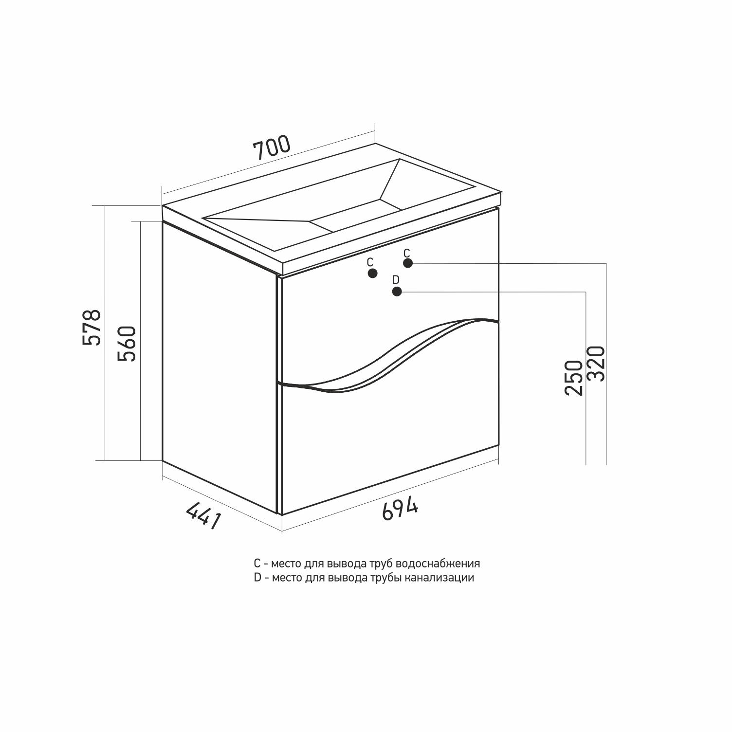 Ширина тумбы с раковиной +- 2мм