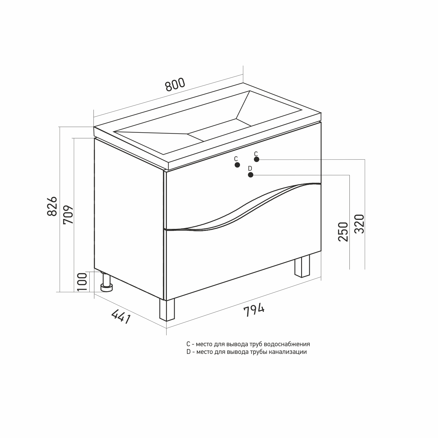 Ширина тумбы с раковиной +- 2мм