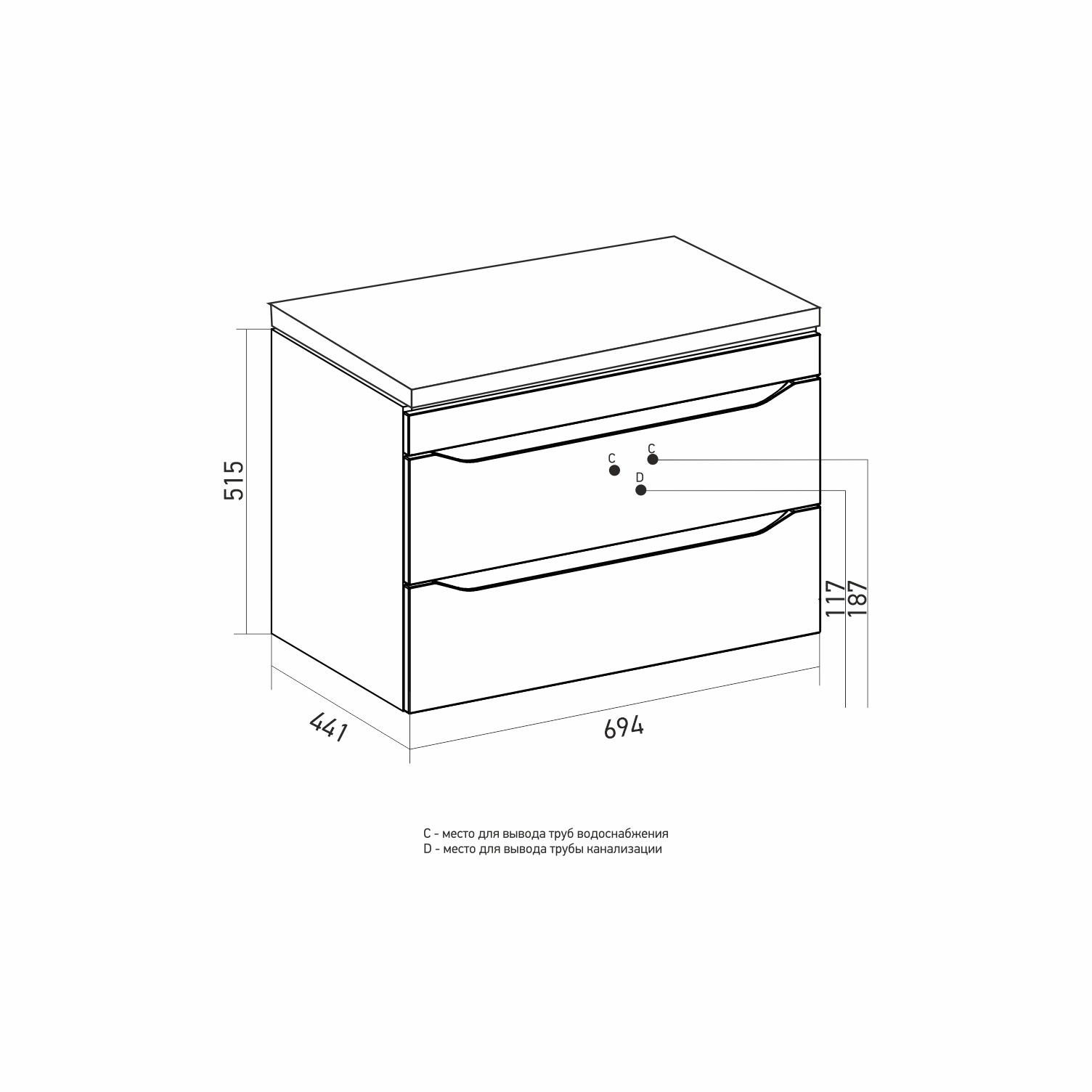 Тумба д/ванной "Лайн-70" подвесная под раковину Марго-70 (MIXLINE) (ПВХ)