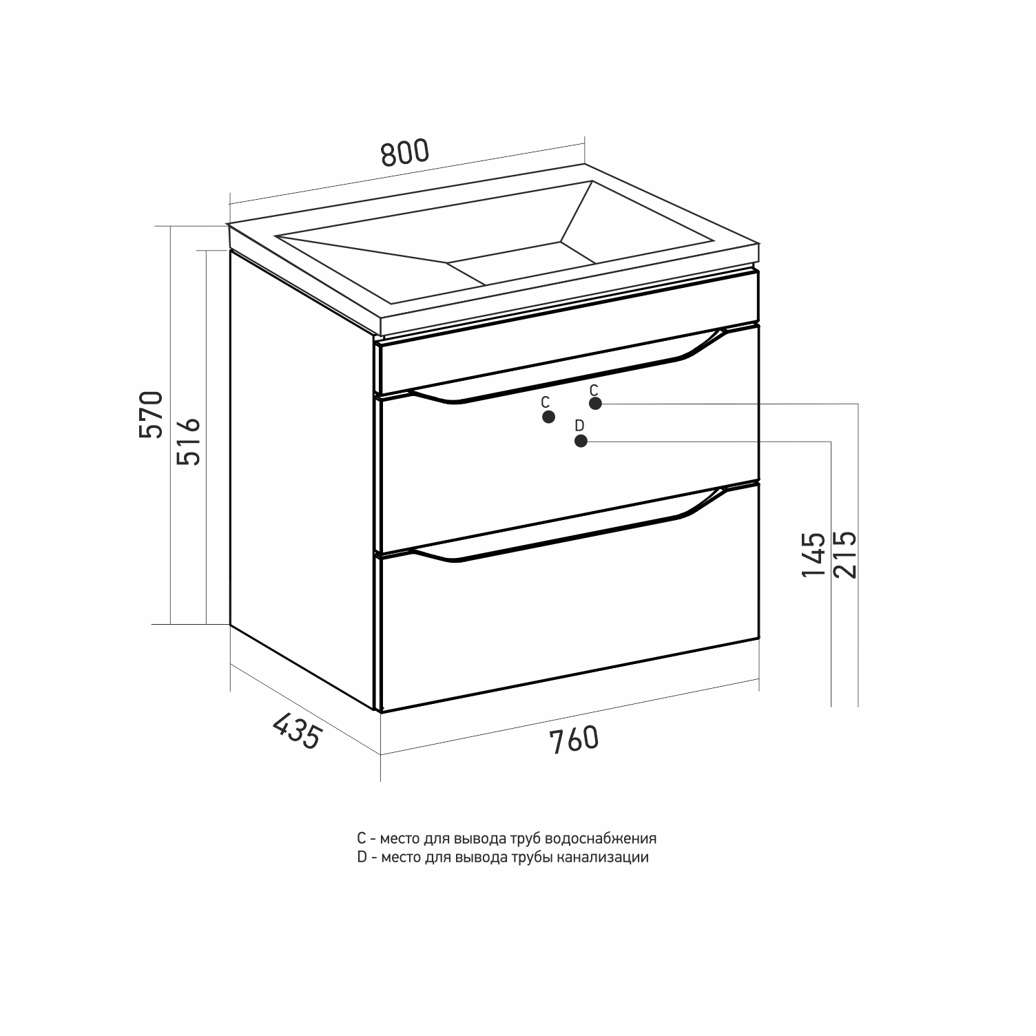 Ширина тумбы с раковиной +- 2мм
