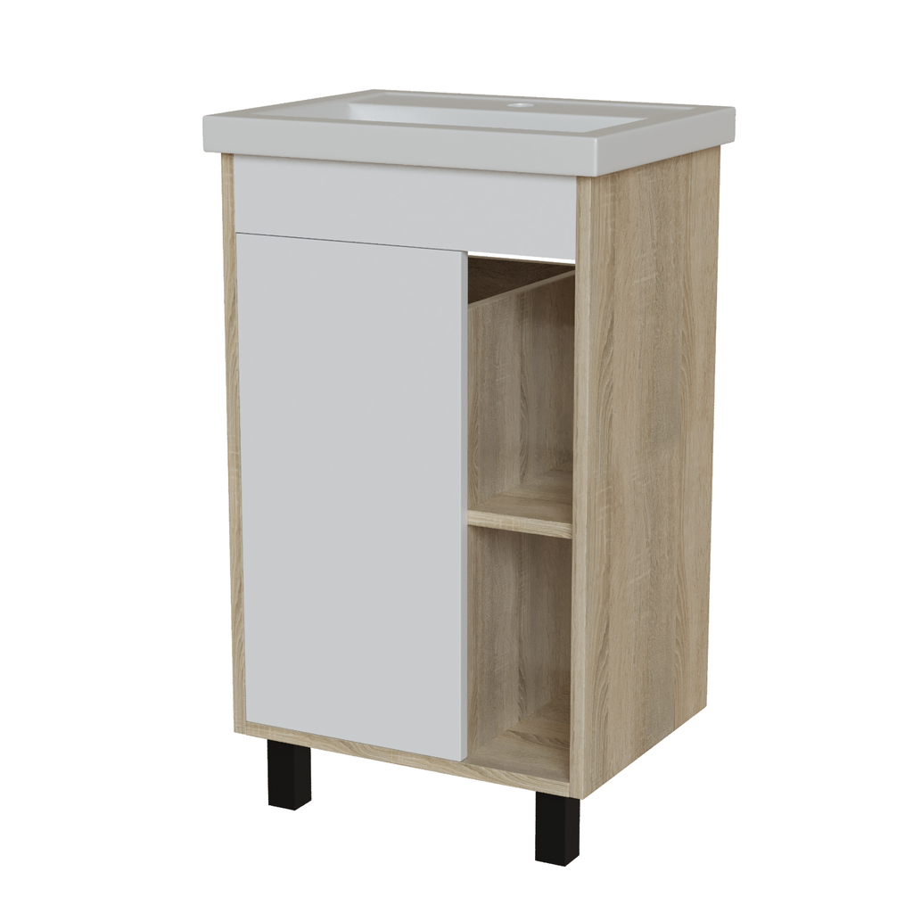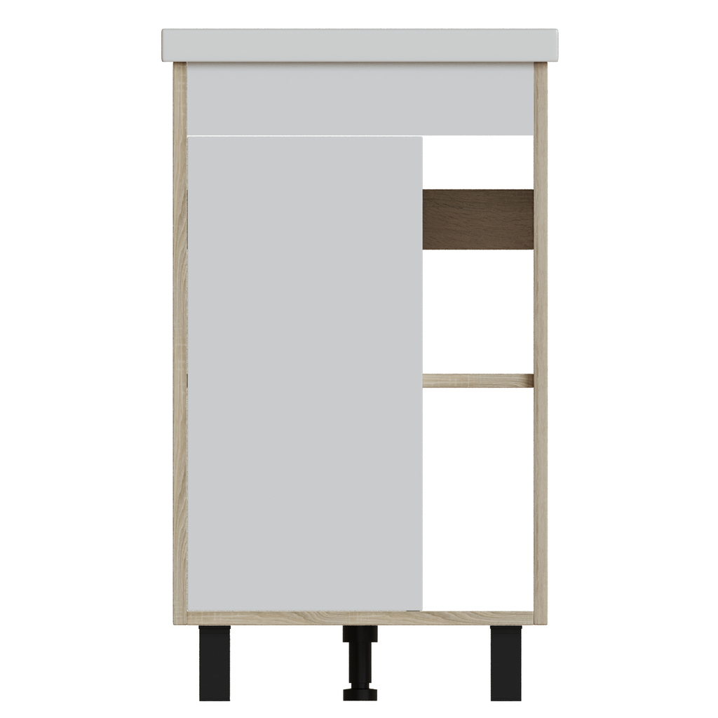 Серия "МИЛТОН" - это идеальный выбор для тех, кто ценит сочетание стиля и практичности. Коллекция отличается сочетанием классической отделкой под дерево и нейтральным белым цветом, что позволяет ей гармонично вписаться в интерьер ванной комнаты, подчеркивая его современный характер.Преимущества серии:- Современный дизайн с двухцветными фасадами: элегантное сочетание белого и дуба сонома.- Продуманная организация: открытые ниши для легкого доступа к самым нужным вещам.- Увеличенная ширина пенала до 50см: дает еще больше места для хранения ваших вещейКорпус тумбы изготовлен из влагостойкого ЛДСП, а фасады - из влагостойкого МДФ с пленкой ПВХ, что гарантирует стойкость к влаге и долгий срок службы.Тумба предназначена для использования с накладной раковиной «ФОСТЕР» — она приобретается отдельно.Тумбы доступны в трех размерах (ширина 50см, 60см и 70см).Напольная тумба с одной распашной дверцей и открытыми нишами для хранения. Внутри полка из ЛДСП. Петли на дверце оснащены доводчиками. Дверца тумбы изготовлена из МДФ и облицована белой матовй пленкой ПВХ белый софт. Корпус тумбы изготовлен из влагостойкого ЛДСП. Тумба устанавливается на четыре регулируемые опоры и фиксируется к стене при помощи креплений.