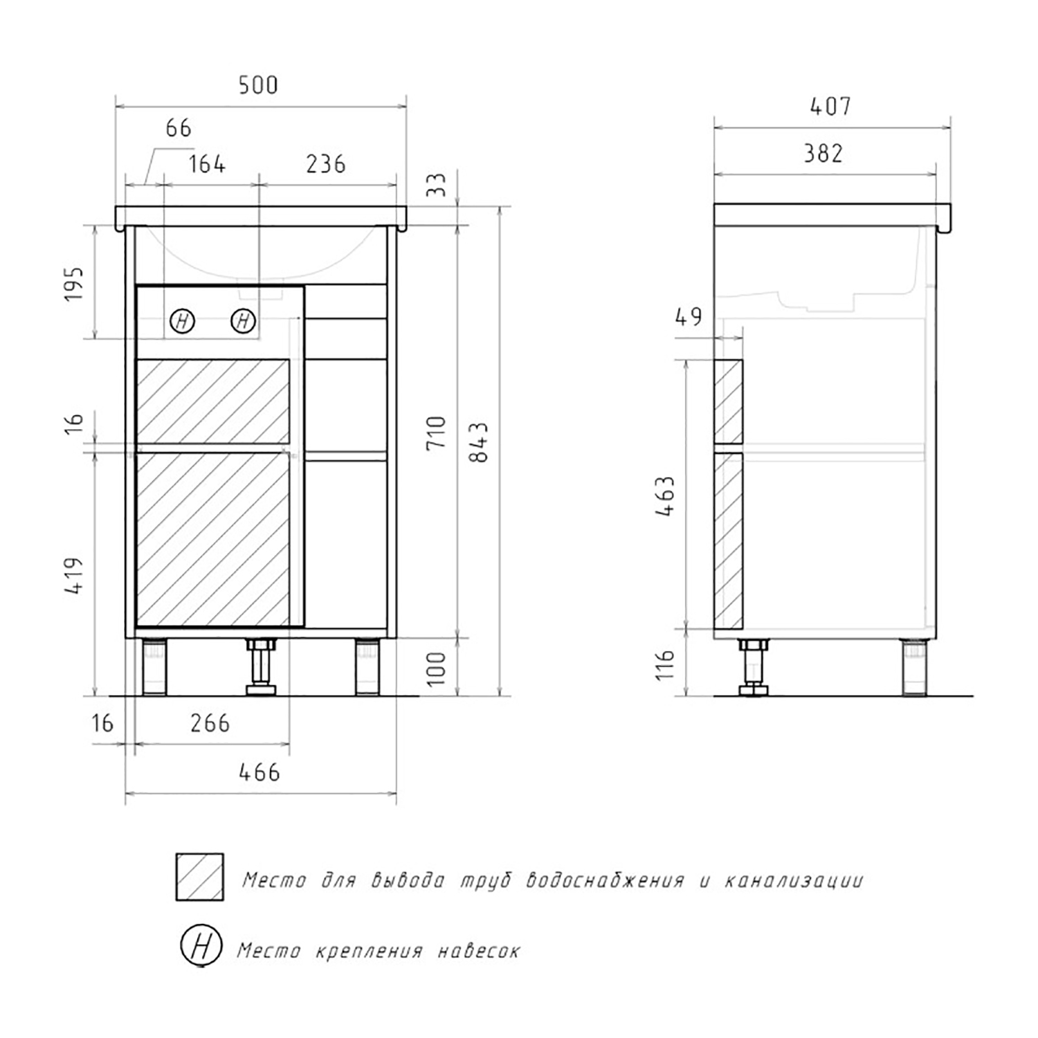 Высота тумбы с раковиной +- 2 мм