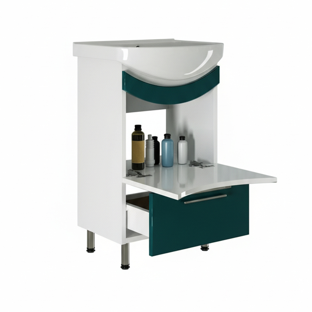 Коллекция «Радуга» — это выразительное сочетание эргономики и стиля. Акцентные цветовые вставки на фасадах добавляют интерьеру динамичности и современности, гармонично интегрируясь в различные стилевые решения. Широкая палитра расцветок позволяет подобрать оптимальное решение с учётом персональных предпочтений и особенностей пространства.Размеры указаны для готового изделия в сборе с учетом раковины, тумбы и ножек.