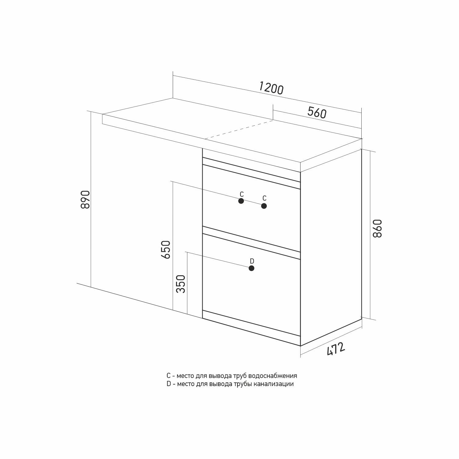 Ширина тумбы с раковиной +- 2мм
