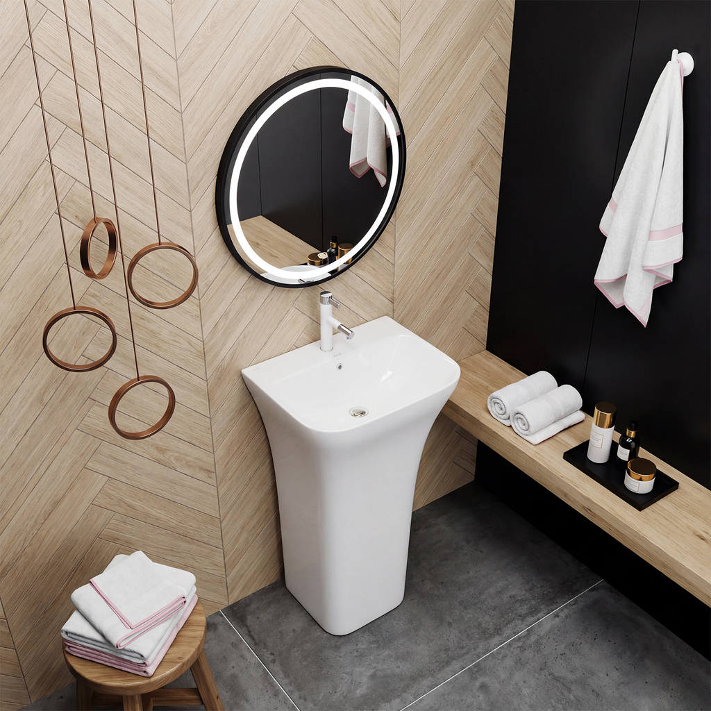 Умывальники-моноблоки WAVE Купить стильный и практичный умывальник-моноблок WAVE – отличное решение для вашей ванной комнаты или санузла. Напольные керамические модели сочетают в себе элегантный дизайн, надежность и простоту монтажа.Основные преимущества умывальников WAVE:- Моноблочная конструкция: Прочная цельная конструкция (раковина со стойкой) обеспечивает устойчивость, законченный вид и упрощает установку.- Удобный монтаж: Напольный умывальник поставляется в собранном виде. Достаточно установить его на пол, закрепить к стене и подключить коммуникации.- Качественные материалы: Изготовлены из сантехнической керамики, которая отличается высокой прочностью, гигиеничностью и легким уходом.- Полная комплектация: Все модели имеют хромированный перелив для защиты от переполнения и стандартное отверстие для установки смесителя.- Разнообразие дизайна: В каталоге представлены умывальники разных форм – прямоугольные, круглые и овальные, что позволяет выбрать модель под любой стиль интерьера.Идеально подходят для:- Быстрого и простого обновления санузла без сложного монтажа.- Создания аккуратного и эргономичного пространства в ванной комнате.- Выбора готового решения, не требующего отдельной покупки и установки тумбы.Умывальники-моноблоки WAVE – это удачное сочетание современного дизайна и функциональности. В нашем каталоге вы можете подобрать и купить умывальник-моноблок нужной формы и размера.