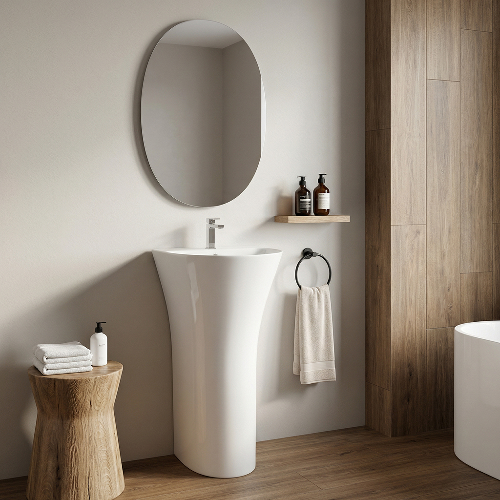 Умывальники-моноблоки WAVE Купить стильный и практичный умывальник-моноблок WAVE – отличное решение для вашей ванной комнаты или санузла. Напольные керамические модели сочетают в себе элегантный дизайн, надежность и простоту монтажа.Основные преимущества умывальников WAVE:- Моноблочная конструкция: Прочная цельная конструкция (раковина со стойкой) обеспечивает устойчивость, законченный вид и упрощает установку.- Удобный монтаж: Напольный умывальник поставляется в собранном виде. Достаточно установить его на пол, закрепить к стене и подключить коммуникации.- Качественные материалы: Изготовлены из сантехнической керамики, которая отличается высокой прочностью, гигиеничностью и легким уходом.- Полная комплектация: Все модели имеют хромированный перелив для защиты от переполнения и стандартное отверстие для установки смесителя.- Разнообразие дизайна: В каталоге представлены умывальники разных форм – прямоугольные, круглые и овальные, что позволяет выбрать модель под любой стиль интерьера.Идеально подходят для:- Быстрого и простого обновления санузла без сложного монтажа.- Создания аккуратного и эргономичного пространства в ванной комнате.- Выбора готового решения, не требующего отдельной покупки и установки тумбы.Умывальники-моноблоки WAVE – это удачное сочетание современного дизайна и функциональности. В нашем каталоге вы можете подобрать и купить умывальник-моноблок нужной формы и размера.