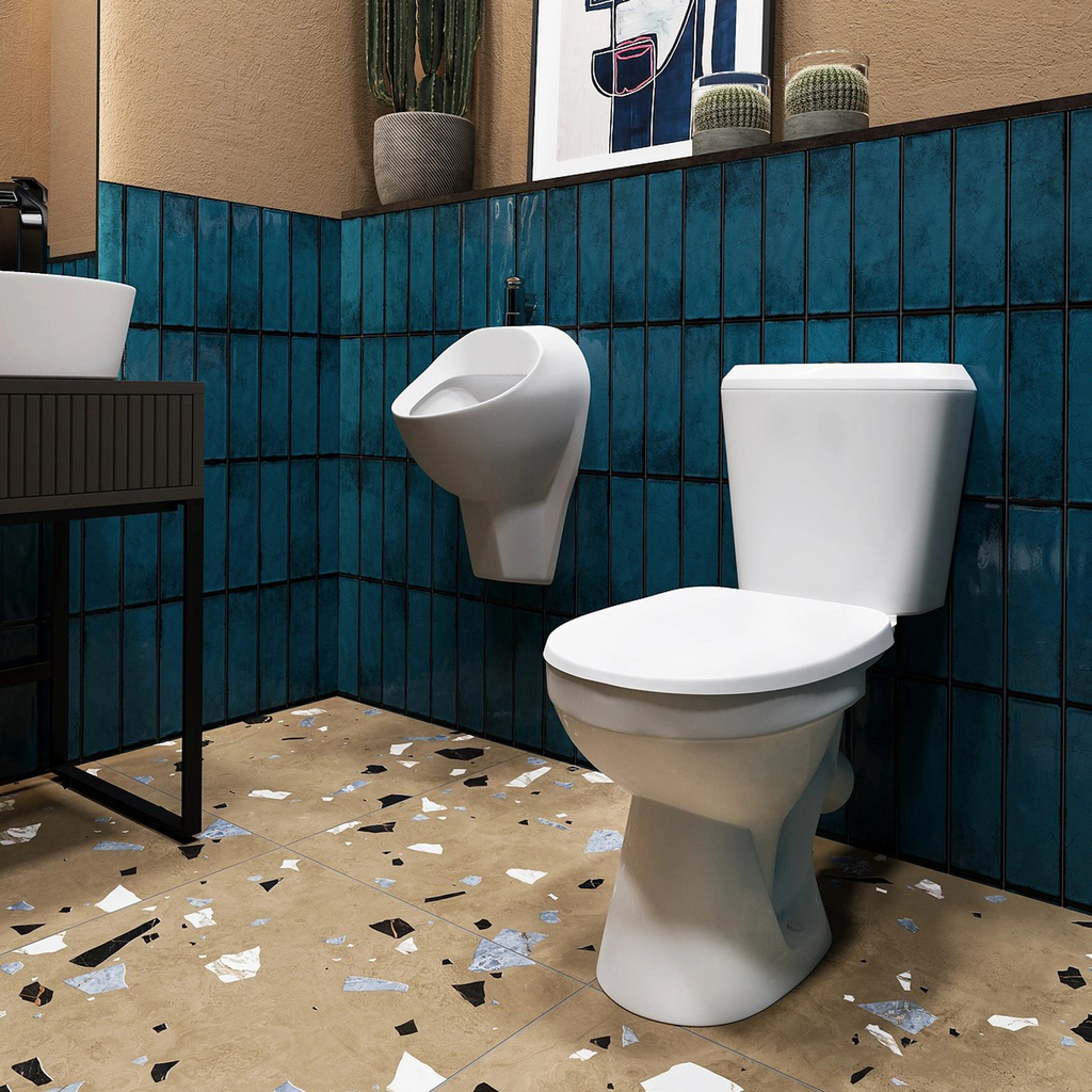 ОАО "Керамин" - одно из крупнейших предприятий Восточной Европы по производству керамической плитки, керамогранита и санитарной керамики - представляет унитазы-компакты для современных ванных комнат. Вся продукция соответствует европейским стандартам контроля качества и изготавливается из 100% фарфора, что гарантирует исключительную долговечность и гигиеничность. На унитазы предоставляется официальная гарантия 5 лет, а на сидения для унитазов 2 года.Ключевые особенности унитазов-компактов:- Полная комплектация для монтажа - включает все необходимые элементы для установки.- Нижний подвод воды.- Однорежимная арматура - механизм с одной кнопкой, при нажатии которой, вся вода из бачка сливается в унитаз.- Сиденье из полипропилена. Мягкое сидение (МС). Изготовлено из полипропилена , полипропилен термопластичный полимер, широко используемый в различных бытовых и промышленных целях. Гибкий и лёгкий материал, устойчив к влаге и ударам. В отличие от дюропласта , более пластичен, что снижает вероятность его растрескивания под давлением. - Круговой смыв - вода поступает в чашу унитаза не прямо, а по дуге, омывая при этом всю ее поверхность.- Подключение к канализации - под углом/косое. Вывод в канализацию при таком типе подключения находится под углом 30 градусов. Такой тип подключения характерен для домов, построенных в 80-90 гг.Унитазы-компакты "Керамин" сочетают функциональность и эргономичный дизайн, подходящий для различных стилей интерьера. Благодаря использованию инновационных технологий производства, изделия устойчивы к механическим повреждениям и воздействию влаги, сохраняя безупречный внешний вид на протяжении всего срока службы.Продукция "Керамин" - это проверенное качество и современные решения для обустройства ванной комнаты, сочетающие функциональность, долговечность и эстетичность.Для производства применяются современные технологии:• литье под высоким давлением в полимерных формах, позволяет получать изделия с правильной геометрией и более четкими линиями• технология «клееного кольца», позволяет выпускать чаши унитазов с «душевым» сливом• глазурование на автоматических линиях с роботами напыления, это равномерность нанесения глазури и более высокое качество глазурования изделий• обжиг в современных, автоматизированных печах, позволяет соблюдать максимально правильный режим обжига и охлаждения изделийСанитарный фарфор - это высокоплотный материал на основе каолина, кварца и полевого шпата, обожжённый при температуре 1250-1450 C , с минимальным водопоглощением (
