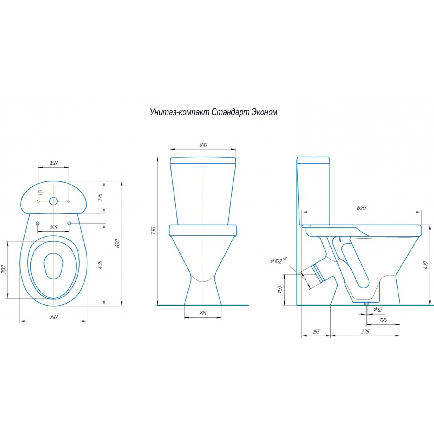 Унитаз-компакт "Стандарт ЭКОНОМ " белый (косой, нижн., сид. полип. упрощенное, арм.) (Rosa)