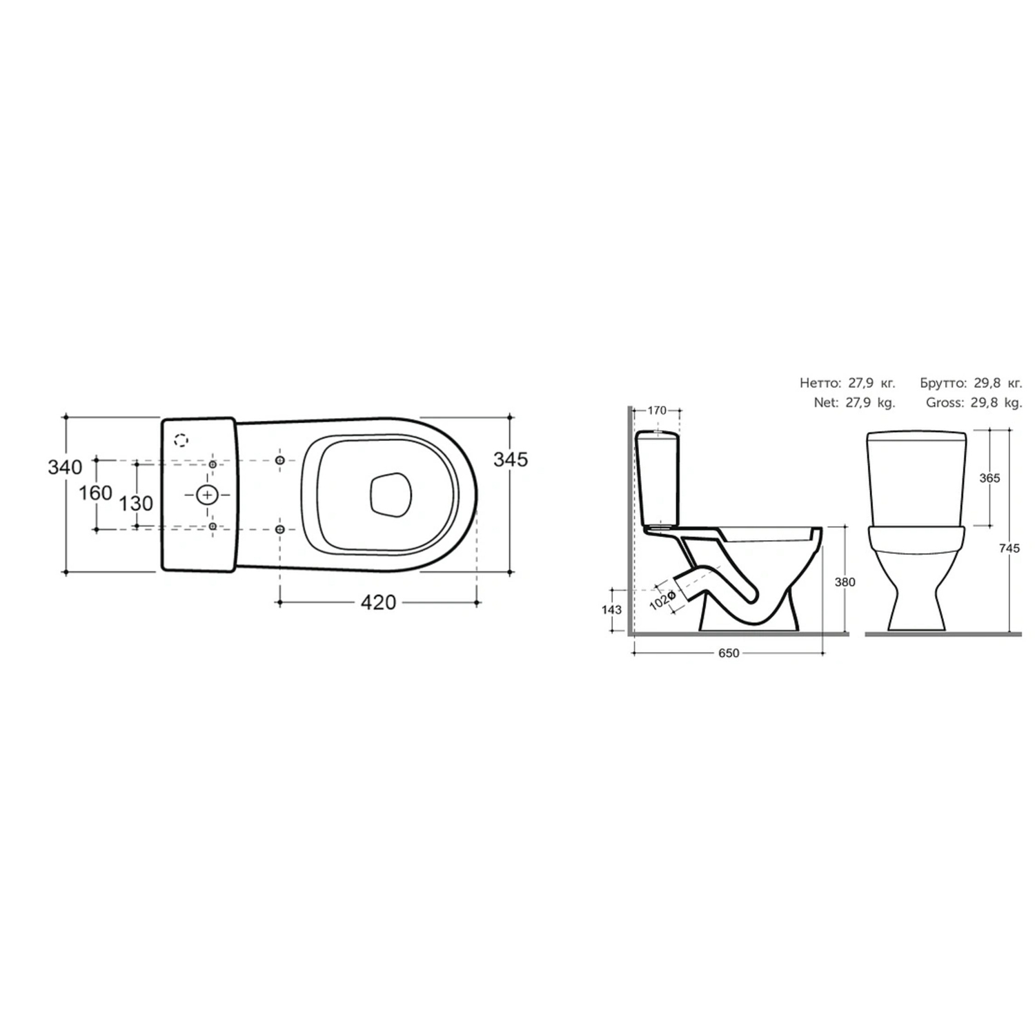 ОАО "Керамин" - одно из крупнейших предприятий Восточной Европы по производству керамической плитки, керамогранита и санитарной керамики - представляет унитазы-компакты для современных ванных комнат. Вся продукция соответствует европейским стандартам контроля качества и изготавливается из 100% фарфора, что гарантирует исключительную долговечность и гигиеничность. На унитазы предоставляется официальная гарантия 5 лет, а на сидения для унитазов 2 года. Ключевые особенности унитазов-компактов:- Полная комплектация для монтажа - включает все необходимые элементы для установки- Нижний подвод воды- Двухрежимная арматура - обеспечивает экономию воды при смыве. Кнопка состоит из двух частей. Нажатие на одну половину сливает половину объема бачка, с помощью второй полный объем.- Сиденье из полипропилена. Мягкое сидение (МС). Изготовлено из полипропилена , полипропилен термопластичный полимер, широко используемый в различных бытовых и промышленных целях. Гибкий и лёгкий материал, устойчив к влаге и ударам. В отличие от дюропласта , более пластичен, что снижает вероятность его растрескивания под давлением. - Круговой смыв - вода поступает в чашу унитаза не прямо, а по дуге, омывая при этом всю ее поверхность.- Подключение к канализации - под углом/косое. Вывод в канализацию при таком типе подключения находится под углом 30 градусов. Такой тип подключения характерен для домов, построенных в 80-90 гг.Унитазы-компакты "Керамин" сочетают функциональность и эргономичный дизайн, подходящий для различных стилей интерьера. Благодаря использованию инновационных технологий производства, изделия устойчивы к механическим повреждениям и воздействию влаги, сохраняя безупречный внешний вид на протяжении всего срока службы.Продукция "Керамин" - это проверенное качество и современные решения для обустройства ванной комнаты, сочетающие функциональность, долговечность и эстетичность.Для производства применяются современные технологии:- литье под высоким давлением в полимерных формах, позволяет получать изделия с правильной геометрией и более четкими линиями- технология "клееного кольца", позволяет выпускать чаши унитазов с "душевым" сливом- глазурование на автоматических линиях с роботами напыления, это равномерность нанесения глазури и более высокое качество глазурования изделий- обжиг в современных, автоматизированных печах, позволяет соблюдать максимально правильный режим обжига и охлаждения изделийСанитарный фарфор - это высокоплотный материал на основе каолина, кварца и полевого шпата, обожжённый при температуре 1250-1450 C , с минимальным водопоглощением (