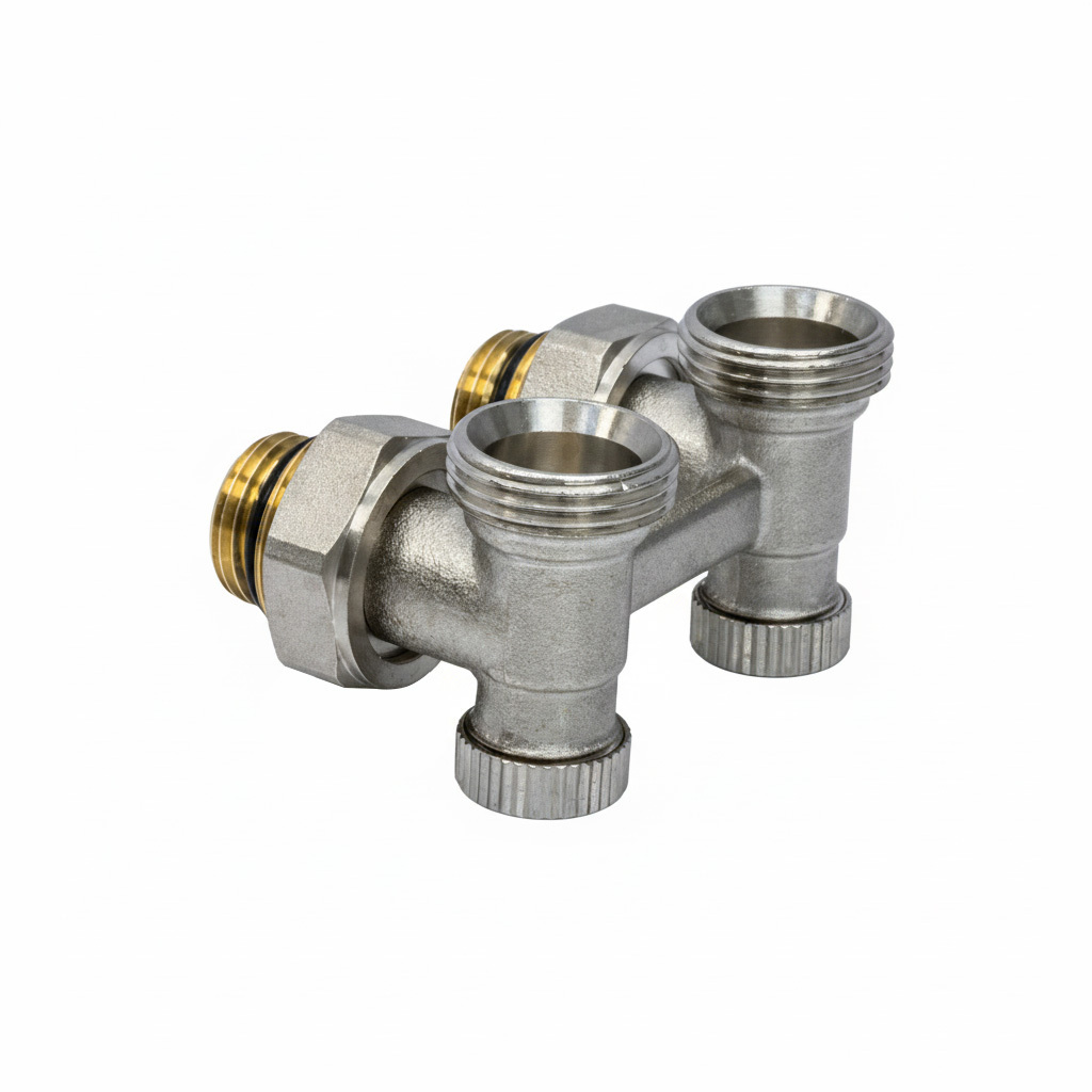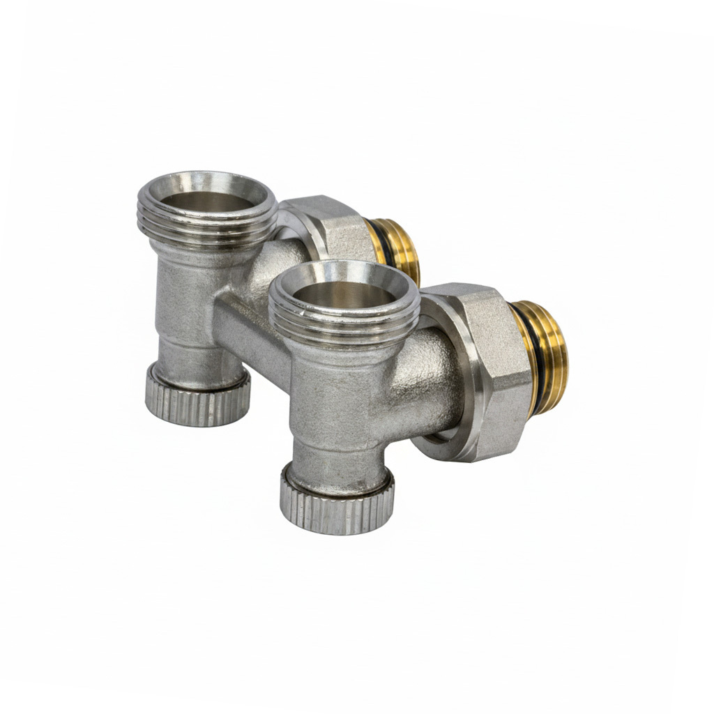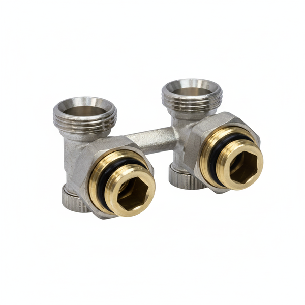 Профессиональное решение для современных систем отопления - узел нижнего подключения VRT для радиаторов. Это изделие предназначено для эффективного подключения радиаторов с нижней подводкой к двухтрубным системам отопления.Ключевые преимущества:- Эстетичный монтаж - позволяет скрыть подводки труб для создания аккуратного внешнего вида- Функциональность - обеспечивает возможность отключения радиатора от системы без остановки всей системы отопления- Надежность - корпус из никелированной латуни гарантирует долговечность и коррозионную стойкость- Универсальность - оптимальное решение для современных интерьеров с минималистичным дизайномТехнические характеристикиМаксимальное рабочее давление: 10 барМаксимальная рабочая температура: 120 °СМатериал корпуса: никелированная латунь Межосевое расстояние: 50 ммРазмер присоединения: 1/2Тип резьбы: наружная