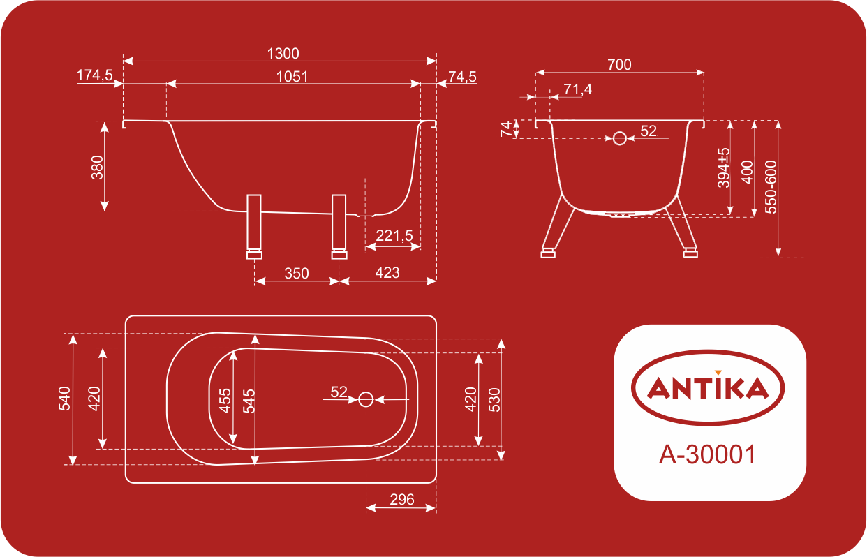 Antika® – легендарная торговая марка стальных эмалированных ванн, моек и поддонов для комфортного ежедневного использования. Продукция получила заслуженную популярность как среди потребителей, так и строителей благодаря высокому качеству и своей привлекательной цене.Особенность ванн – наличие ранта на бортах изделий.Дополнительная ступень на бортах по периметру ванны препятствует стеканию воды на пол.
