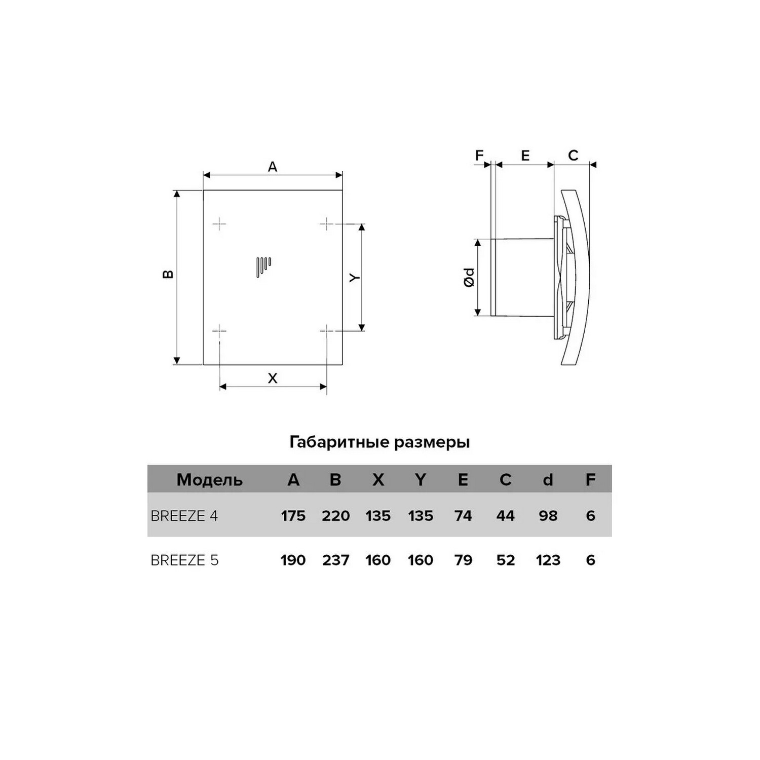 Бытовые вентиляторы используются для удаления из помещения отработанного воздуха. Чаще всего их устанавливают в санузлах, ванных комнатах и на кухнях. Благодаря работе вентилятора в помещении снижается уровень влажности, что защищает от образования плесени и грибка.Дизайнерская серия BREEZE имеет нестандартную форму и лаконичный дизайн с закрытой лицевой панелью, которую можно легко снять, чтобы помыть или просто убрать пыль с корпуса и крыльчатки. Модель оснащена обратным клапаном, который предотвращает проникновение неприятных запахов из шахты. Двигатель на шарикоподшипниках позволяет установить вентилятор как в стену, так и в потолок (при снятии обратного клапана).Монтаж осуществляется с помощью саморезов, которые входят в комплект.Дополнительные особенности:- Дизайнерская серия;- Легкосъемная панель;- Низкое энергопотребление;- Низкий уровень шума;- Малошумный обратный клапан;- Защита от перегрева.