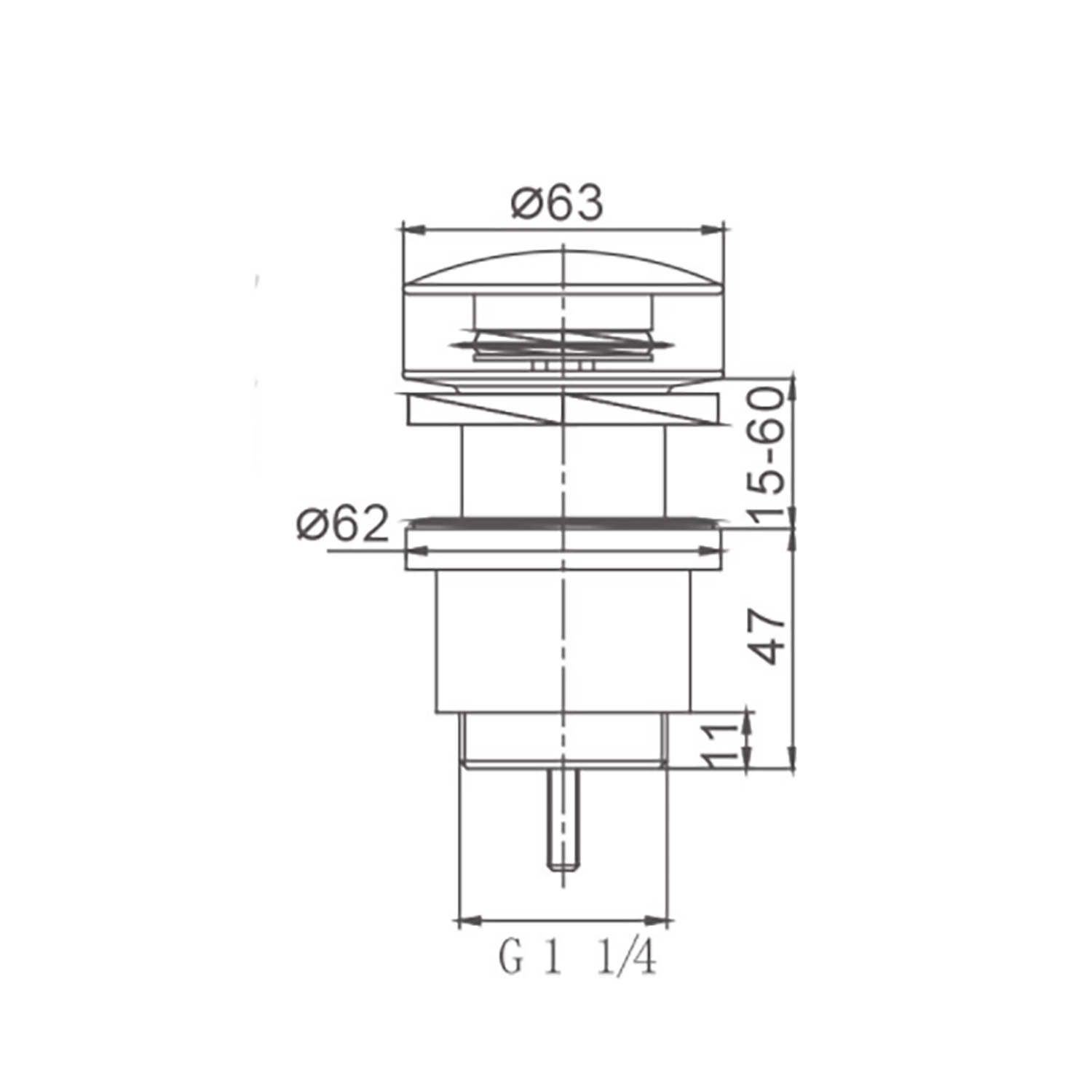Выпуск для сифона click-clack цельномет. пробка 63мм без перелива F62-8 (белый+хром)