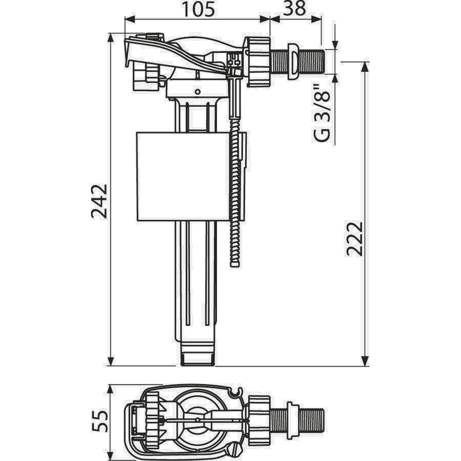 Универсальный механизм для керамического бачка.Область применения: - для установки на боковой стороне бачка;- для замены существующего механизма похожего назначения.Свойства:- пластиковая резьба длиной 38 мм; - встроенный фильтр для улавливания грубых нечистот; - плавное закрытие механизма; - возможность регулировать уровень воды; - низкая чувствительность к перепадам давления в водопроводе;- материал: ABS.