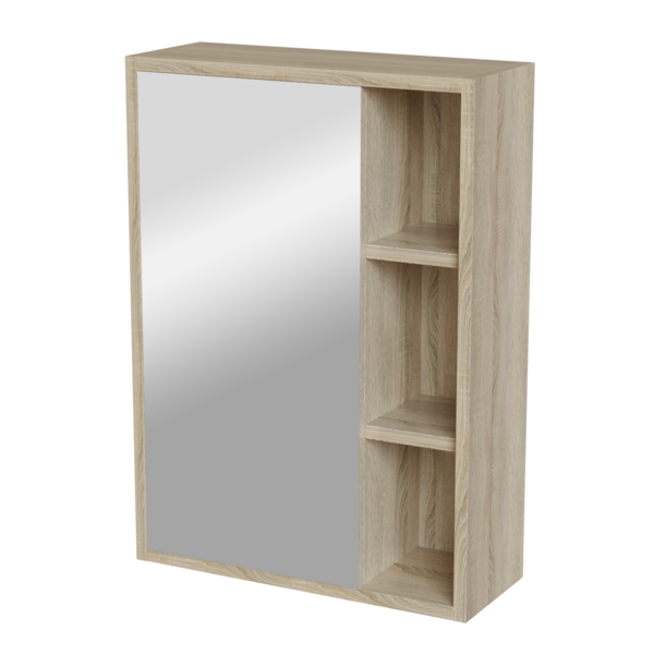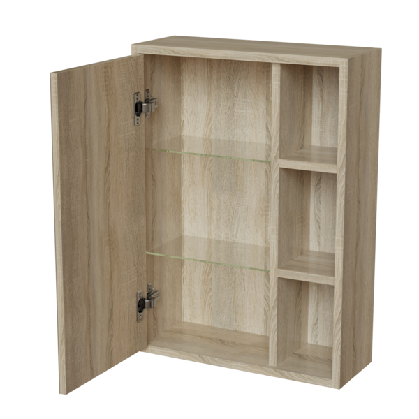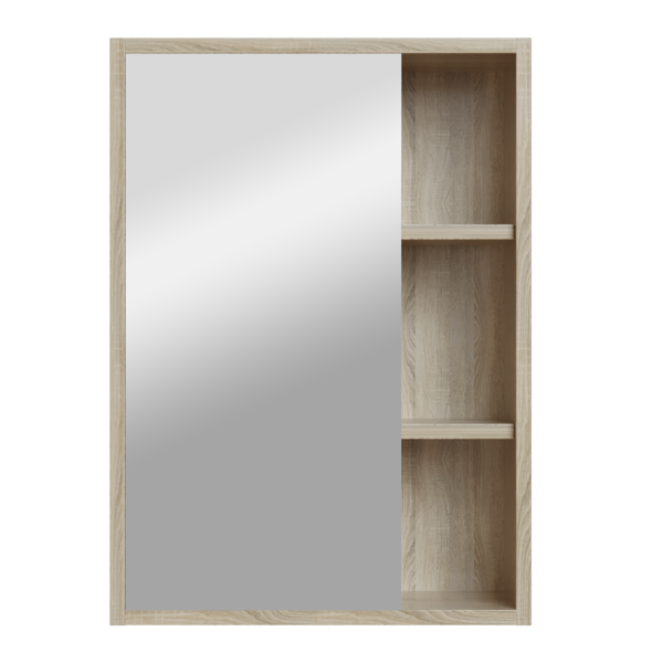 Серия "МИЛТОН" - это идеальный выбор для тех, кто ценит сочетание стиля и практичности. Коллекция отличается сочетанием классической отделкой под дерево и нейтральным белым цветом, что позволяет ей гармонично вписаться в интерьер ванной комнаты, подчеркивая его современный характер.Преимущества серии:- Современный дизайн с двухцветными фасадами: элегантное сочетание белого и дуба сонома.- Продуманная организация: открытые ниши для легкого доступа к самым нужным вещам.- Увеличенная ширина пенала до 50см: дает еще больше места для хранения ваших вещейЗеркальный шкаф распашной дверцей и открытыми нишами для хранения. Внутри 2 стеклянные полки. Петли на дверце оснащены доводчиками. Фасад и корпус изготовлены из влагостойкого ЛДСП. По умолчанию шкаф зеркальный собран с открыванием дверки налево. Для смены ориентации необходимо повернуть шкаф на 180 градусов перед установкой.Комплектация - крепления, 2 стеклянные полки