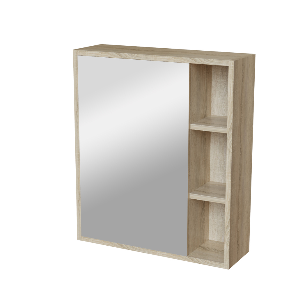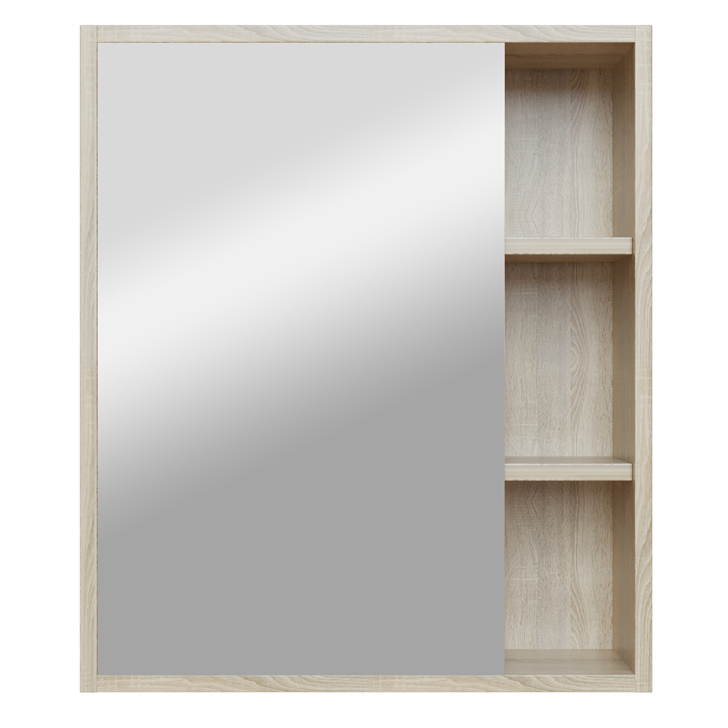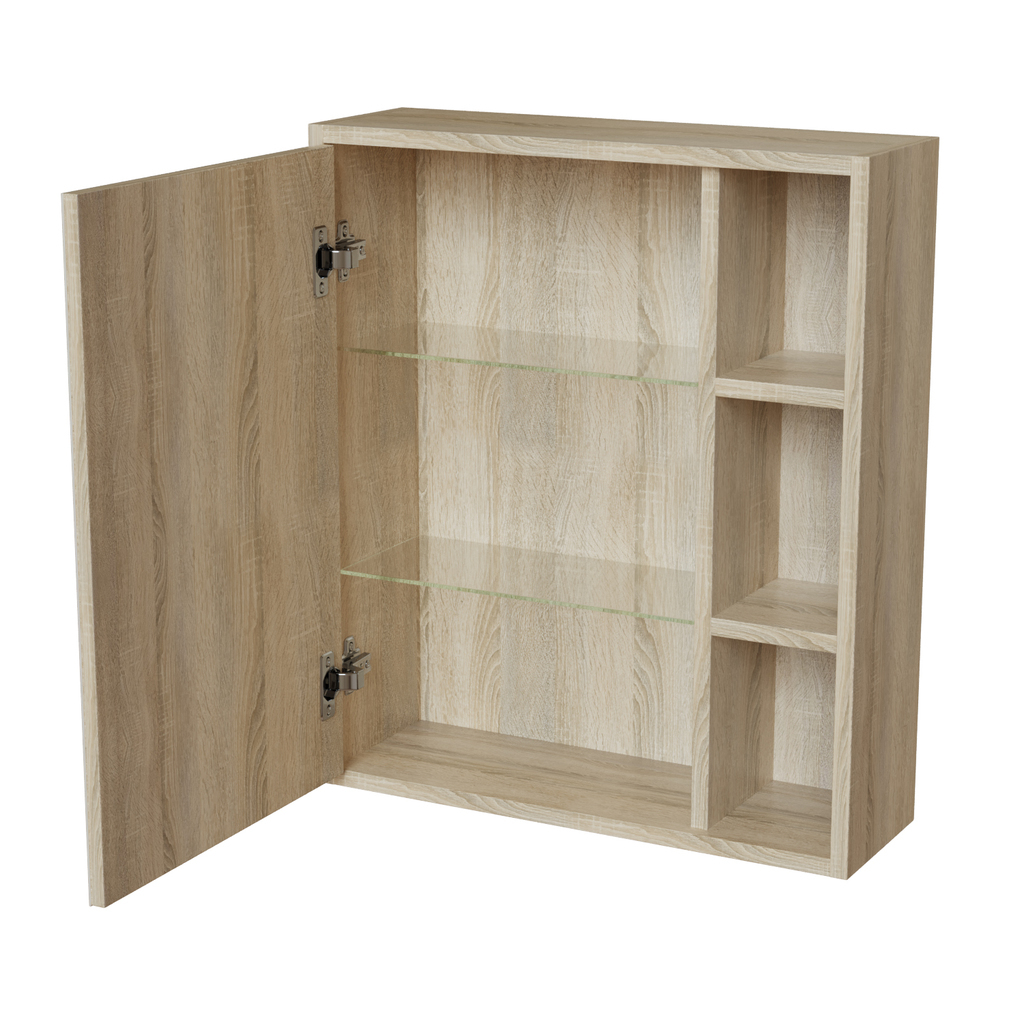 Серия "МИЛТОН" - это идеальный выбор для тех, кто ценит сочетание стиля и практичности. Коллекция отличается сочетанием классической отделкой под дерево и нейтральным белым цветом, что позволяет ей гармонично вписаться в интерьер ванной комнаты, подчеркивая его современный характер.Преимущества серии:- Современный дизайн с двухцветными фасадами: элегантное сочетание белого и дуба сонома.- Продуманная организация: открытые ниши для легкого доступа к самым нужным вещам.- Увеличенная ширина пенала до 50см: дает еще больше места для хранения ваших вещейЗеркальный шкаф распашной дверцей и открытыми нишами для хранения. Внутри 2 стеклянные полки. Петли на дверце оснащены доводчиками. Фасад и корпус изготовлены из влагостойкого ЛДСП. По умолчанию шкаф зеркальный собран с открыванием дверки налево. Для смены ориентации необходимо повернуть шкаф на 180 градусов перед установкой.Комплектация - крепления, 2 стеклянные полки