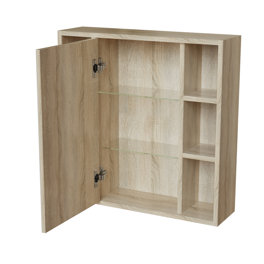 Серия "МИЛТОН" - это идеальный выбор для тех, кто ценит сочетание стиля и практичности. Коллекция отличается сочетанием классической отделкой под дерево и нейтральным белым цветом, что позволяет ей гармонично вписаться в интерьер ванной комнаты, подчеркивая его современный характер.Преимущества серии:- Современный дизайн с двухцветными фасадами: элегантное сочетание белого и дуба сонома.- Продуманная организация: открытые ниши для легкого доступа к самым нужным вещам.- Увеличенная ширина пенала до 50см: дает еще больше места для хранения ваших вещейЗеркальный шкаф распашной дверцей и открытыми нишами для хранения. Внутри 2 стеклянные полки. Петли на дверце оснащены доводчиками. Фасад и корпус изготовлены из влагостойкого ЛДСП. По умолчанию шкаф зеркальный собран с открыванием дверки налево. Для смены ориентации необходимо повернуть шкаф на 180 градусов перед установкой.Комплектация - крепления, 2 стеклянные полки