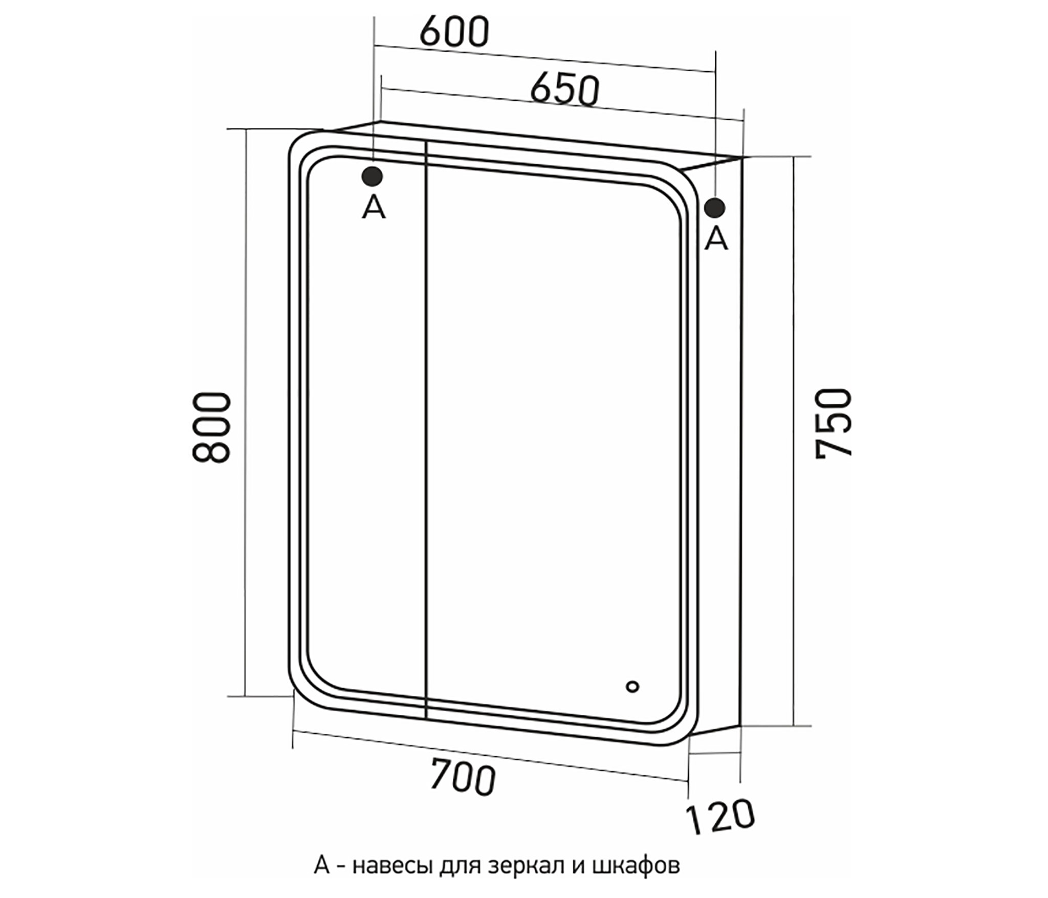 Расстояние между креплениями зеркального шкафа, мм