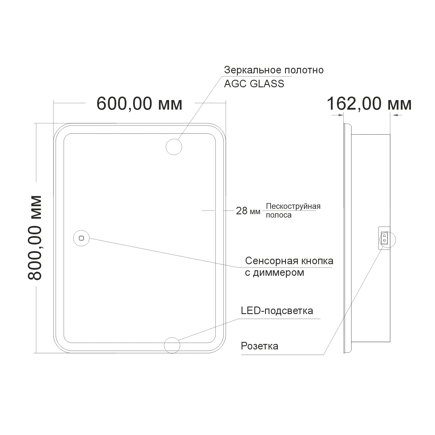 Коллекция зеркальных шкафов ПРЕМЬЕР - это современное практичное решение для ванных комнат.Зеркальные шкафчики органично впишутся в любой интерьер ванной комнаты и позволят организовать вместительную зону хранения личных принадлежностей, благодаря стеклянным полочкам в комплекте.В качестве элемента подсветки используется светодиодная лента, которая обеспечивает яркое свечение по периметру зеркала. Срок службы диодов - 100 000 часов. Свет белый (холодный 5800К - 6300К).Зеркальный шкаф оснащен сенсорным выключателем и диммером, с помощью которого можно регулировать интенсивность освещения.Современная светодиодная подсветка с влагозащитой IP20-IP33 обеспечивает не только эффектное освещение, но и надёжную работу в условиях повышенной влажности. Для изготовления продукции мы используем материалы высокого качества - серебряное влагостойкое зеркальное полотно от AEK (AGC Glass Russia - российская ветвь AGC Glass Europe).Комплектация - полка (стекло) - 2, полкодержатели - 8