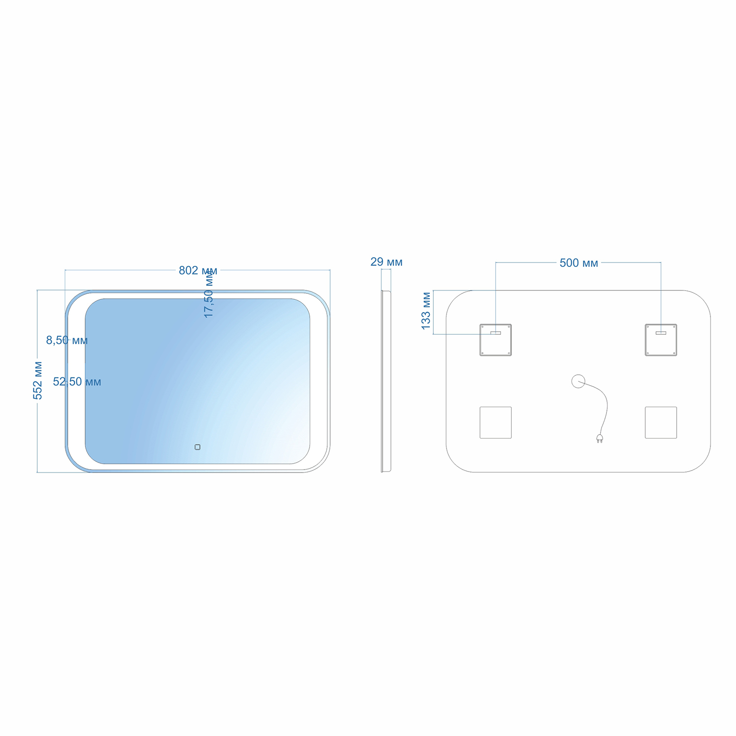 Настенное зеркало для ванной Mixline с подсветкой 80 х 55 см изготовлено из зеркального полотна толщиной 4 мм. Оснащено сенсорным выключателем и диммером, который при удержании пальца на сенсоре позволяет менять интенсивность освещения. Свет белый 6000К. Срок службы диодов - 100 000 часов.Все электрические компоненты размещены внутри корпуса из Abs-пластика, который защищает от влаги и механических повреждений. В качестве элемента подсветки используется светодиодная лента, которая обеспечивает яркое свечение по периметру зеркала. Зеркало влагостойкое и защищено от попадания случайных брызг и капель воды.Современная светодиодная подсветка с влагозащитой IP20-IP33 обеспечивает не только эффектное освещение, но и надёжную работу в условиях повышенной влажности. Для изготовления продукции мы используем материалы высокого качества - серебряное влагостойкое зеркальное полотно от AEK (AGC Glass Russia - российская ветвь AGC Glass Europe).Комплектация: крепеж, инструкция.