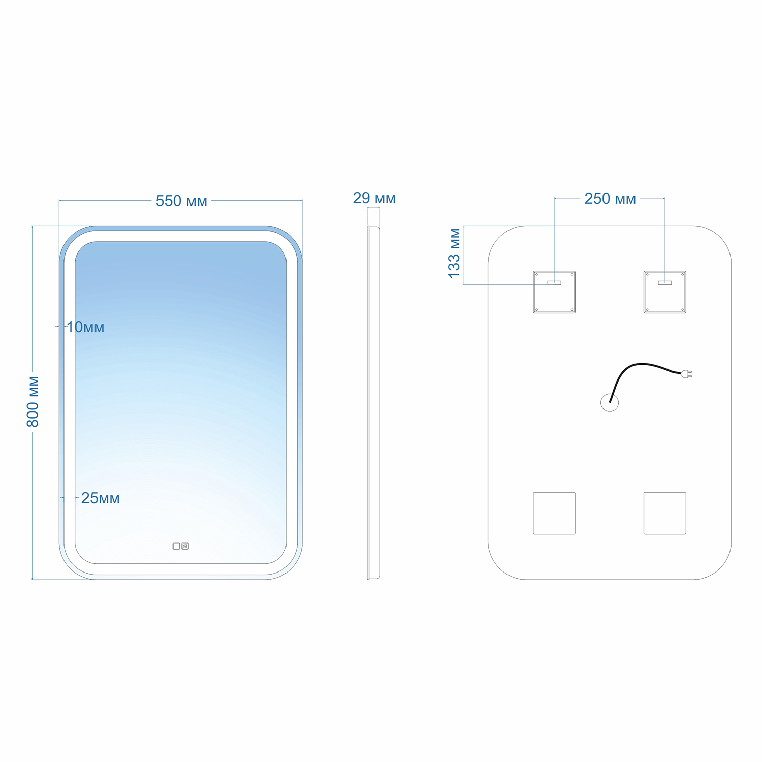 Настенное зеркало для ванной Mixline с подсветкой 55 х 80 см изготовлено из зеркального полотна толщиной 4 мм. Оснащено сенсорным выключателем и диммером, который при удержании пальца на сенсоре позволяет менять интенсивность освещения. Свет белый 6000К. Срок службы диодов - 100 000 часов.Все электрические компоненты размещены внутри корпуса из Abs-пластика, который защищает от влаги и механических повреждений. В качестве элемента подсветки используется светодиодная лента, которая обеспечивает яркое свечение по периметру зеркала. Зеркало влагостойкое и защищено от попадания случайных брызг и капель воды.Подогрев полотна исключит запотевание зеркальной поверхности. Современная светодиодная подсветка с влагозащитой IP20-IP33 обеспечивает не только эффектное освещение, но и надёжную работу в условиях повышенной влажности. Для изготовления продукции мы используем материалы высокого качества - серебряное влагостойкое зеркальное полотно от AEK (AGC Glass Russia - российская ветвь AGC Glass Europe).Комплектация: крепеж, инструкция.