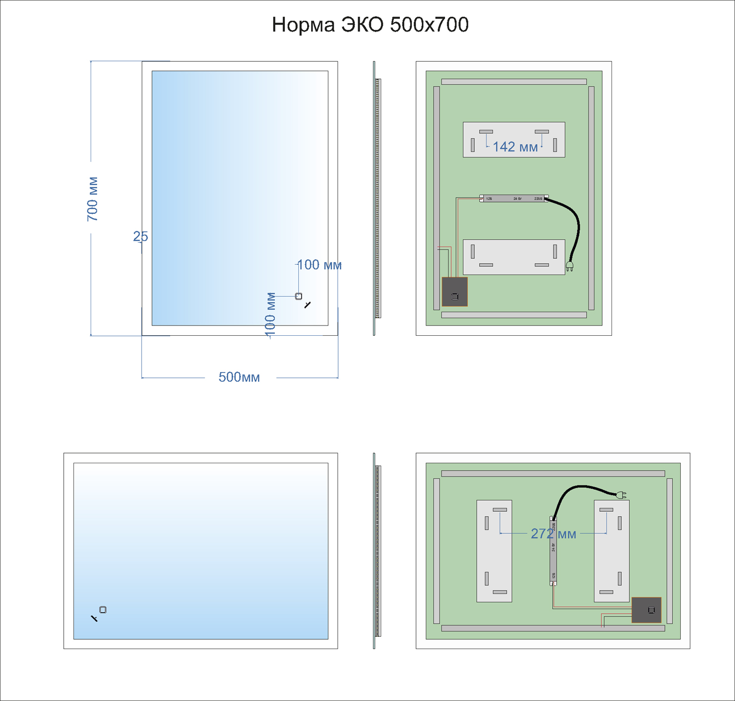 Зеркало MIXLINE «Норма» ЭКОНОМ с подсветкойЭлегантное прямоугольное зеркало «Норма» с интегрированной светодиодной подсветкой – это современное решение для ванной комнаты, прихожей или любой другой зоны, где важны комфорт и эстетика. Модель оснащена сенсорным выключателем, функцией диммера для регулировки яркости и универсальным креплением, что делает её не только стильным, но и максимально удобным аксессуаром.Ключевые особенности:- Светодиодная подсветка: Обеспечивает мягкое, равномерное освещение без бликов. Создает комфортную атмосферу и визуально расширяет пространство.- Сенсорное управление: Включение/выключение и регулировка яркости (диммер) одним касанием. Интуитивно понятный интерфейс и безопасность благодаря отсутствию открытых механических кнопок.- Универсальный крепеж: Продуманная система монтажа позволяет установить зеркало быстро и надежно. Возможна как вертикальная, так и горизонтальная ориентация.- Лаконичный дизайн: Строгая прямоугольная форма и отсутствие лишних деталей позволяют зеркалу гармонично вписаться в интерьер любого стиля – от современного минимализма до классики.Преимущества зеркала «Норма»:- Светодиодная подсветка с длительным сроком службы.- Качественное зеркальное полотно с идеальным отражением.- Универсальность применения: ванная, прихожая, спальня, гардеробная.Зеркало MIXLINE «Норма» – это идеальное сочетание цены, качества и современного дизайна. Выберите подходящий размер и добавьте света и стиля в своё пространство.