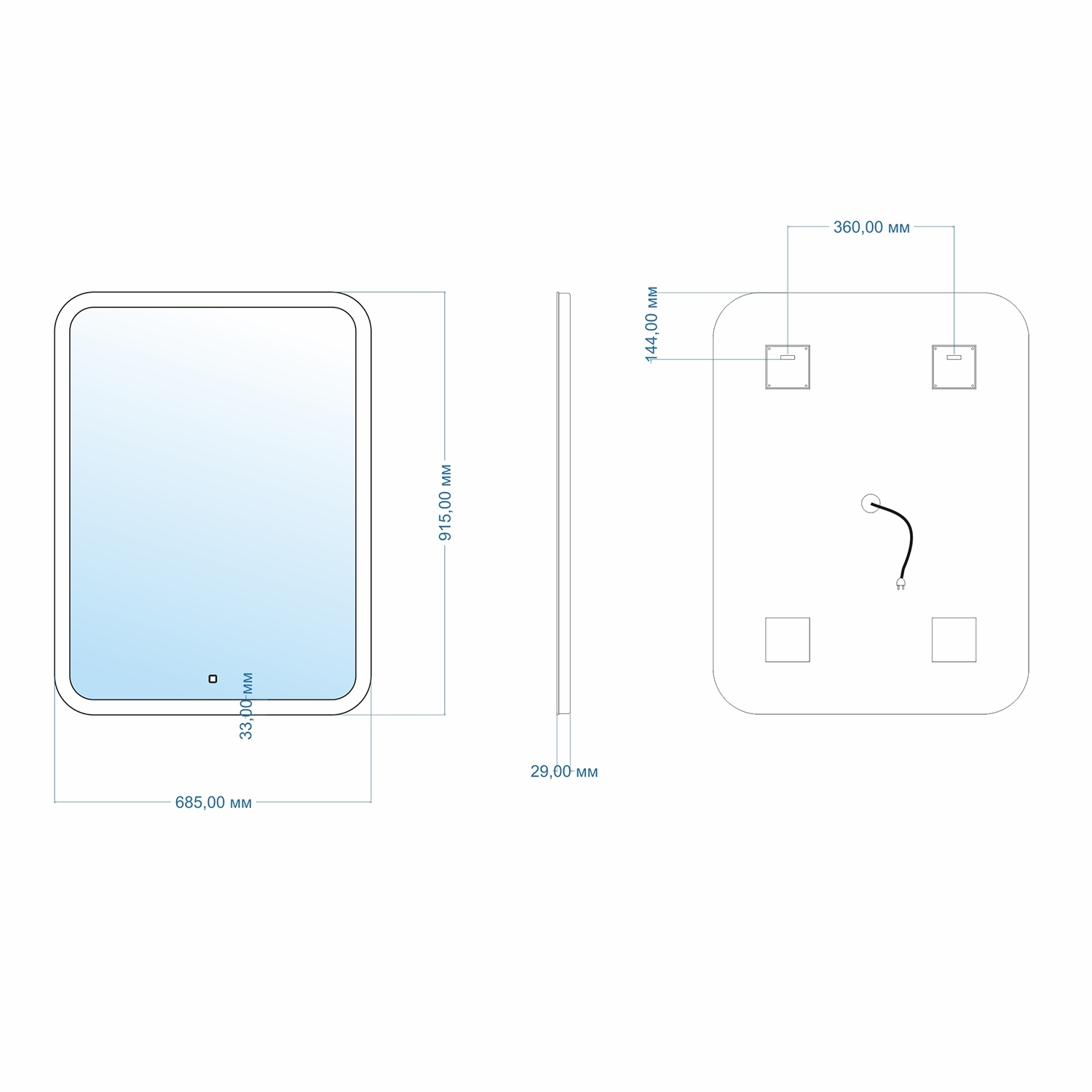 Настенное зеркало для ванной Mixline с подсветкой 68,5 х 91,5 см изготовлено из зеркального полотна толщиной 4 мм. Оснащено сенсорным выключателем и диммером, который при удержании пальца на сенсоре позволяет менять интенсивность освещения. Свет белый 6000К. Срок службы диодов - 100 000 часов.Все электрические компоненты размещены внутри корпуса из Abs-пластика, который защищает от влаги и механических повреждений. В качестве элемента подсветки используется светодиодная лента, которая обеспечивает яркое свечение по периметру зеркала. Зеркало влагостойкое и защищено от попадания случайных брызг и капель воды.Современная светодиодная подсветка с влагозащитой IP20-IP33 обеспечивает не только эффектное освещение, но и надёжную работу в условиях повышенной влажности. Для изготовления продукции мы используем материалы высокого качества - серебряное влагостойкое зеркальное полотно от AEK (AGC Glass Russia - российская ветвь AGC Glass Europe).Комплектация: крепеж, инструкция.
