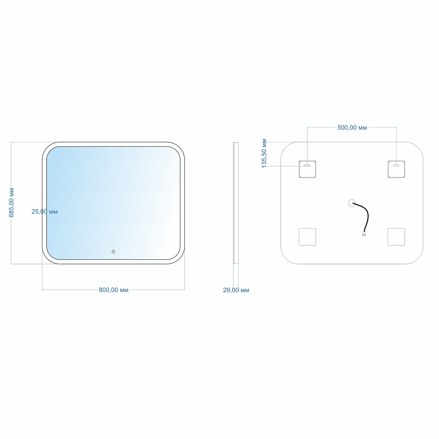 Настенное зеркало для ванной Mixline с подсветкой 80 х 68 см изготовлено из зеркального полотна толщиной 4 мм. Оснащено сенсорным выключателем и диммером, который при удержании пальца на сенсоре позволяет менять интенсивность освещения. Свет белый 6000К. Срок службы диодов - 100 000 часов.Все электрические компоненты размещены внутри корпуса из Abs-пластика, который защищает от влаги и механических повреждений. В качестве элемента подсветки используется светодиодная лента, которая обеспечивает яркое свечение по периметру зеркала. Зеркало влагостойкое и защищено от попадания случайных брызг и капель воды.Современная светодиодная подсветка с влагозащитой IP20-IP33 обеспечивает не только эффектное освещение, но и надёжную работу в условиях повышенной влажности. Для изготовления продукции мы используем материалы высокого качества - серебряное влагостойкое зеркальное полотно от AEK (AGC Glass Russia - российская ветвь AGC Glass Europe).Комплектация: крепеж, инструкция.